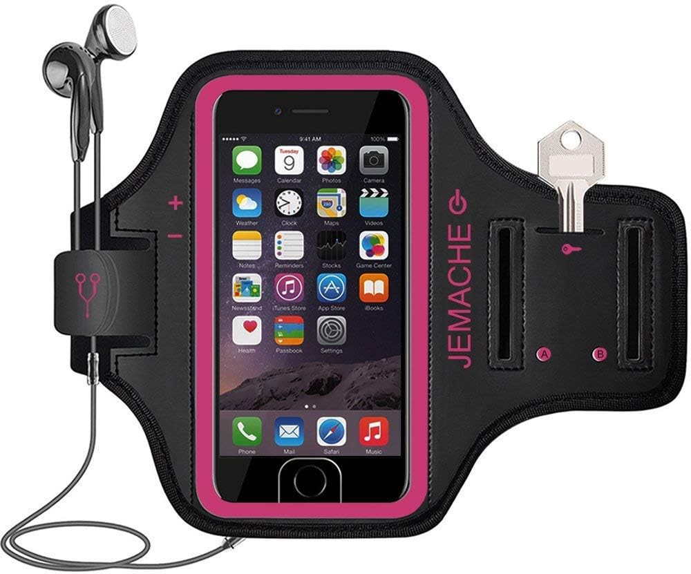 iPhone 6 7 8 SE 2020/2022 Armband, JEMACHE Fingerprint Touch Supported Gym Running Workout Arm Band for iPhone 6/6S/7/8/SE 2nd & 3rd gen with Key Holder (Rosy)