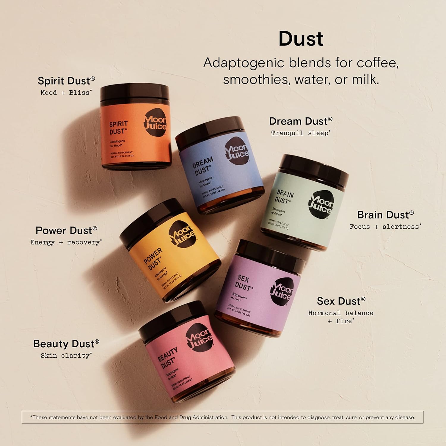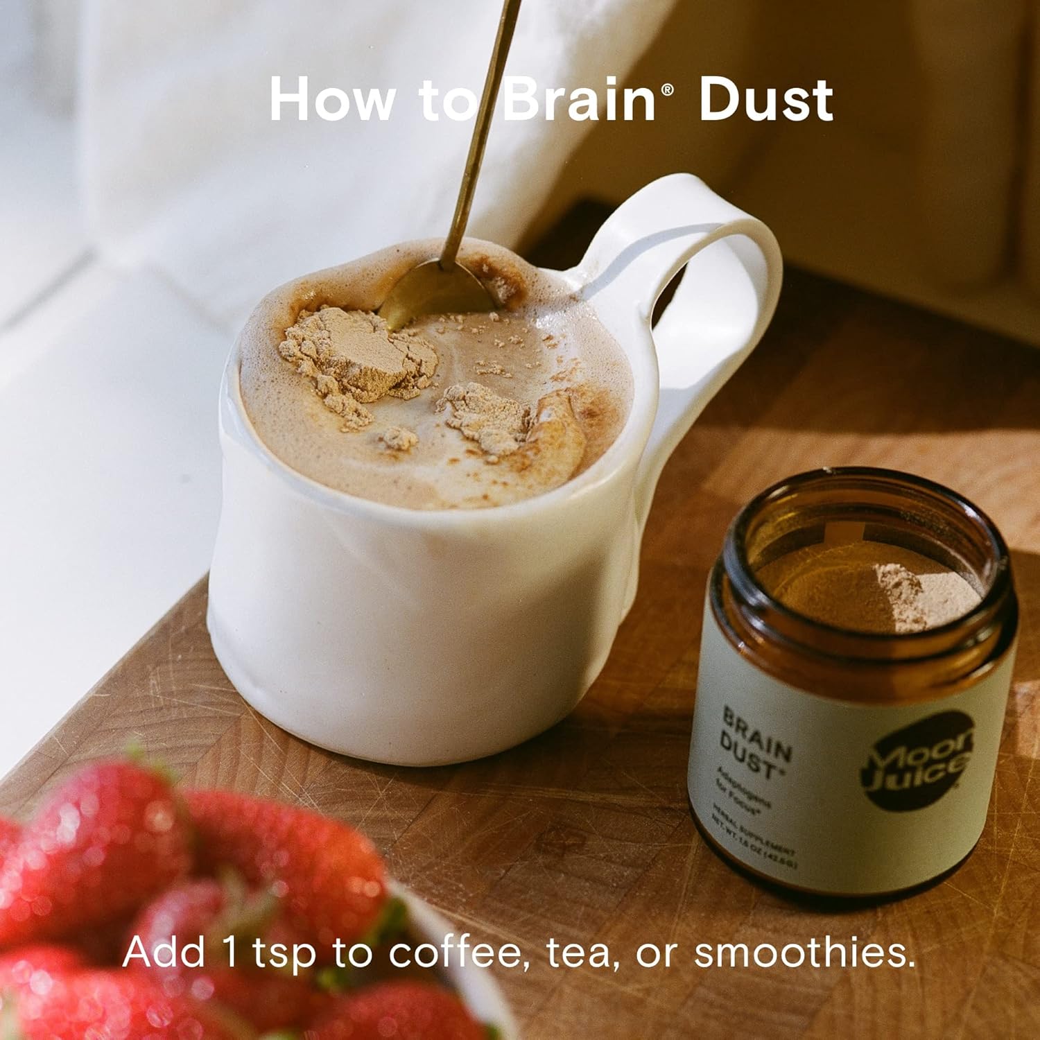 Moon Juice - Brain Dust - Polvo de Hongos - Suplementos Cerebrales para Memoria y Enfoque - Resistencia Mental, Alerta y Concentración - Vegano, Sin Gluten, Sin Cafeína y No OGM - Autocuidado - 1.5 oz