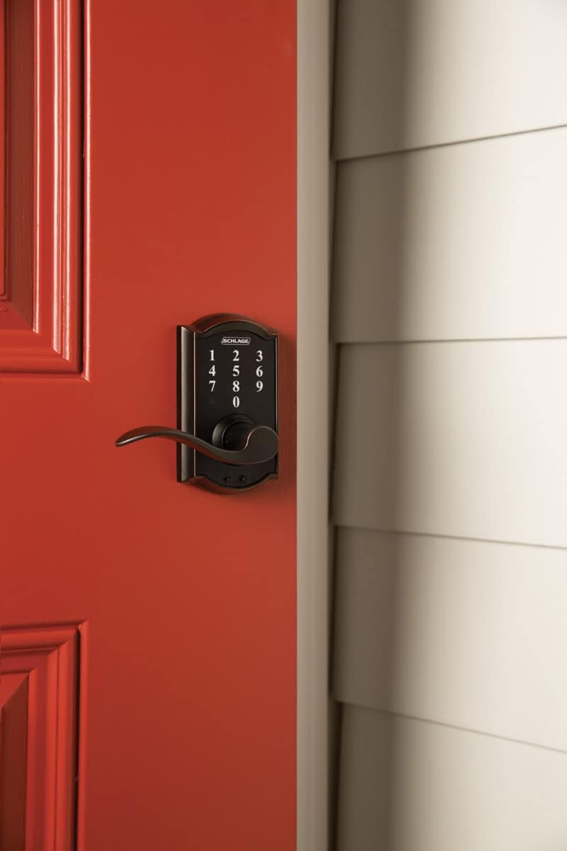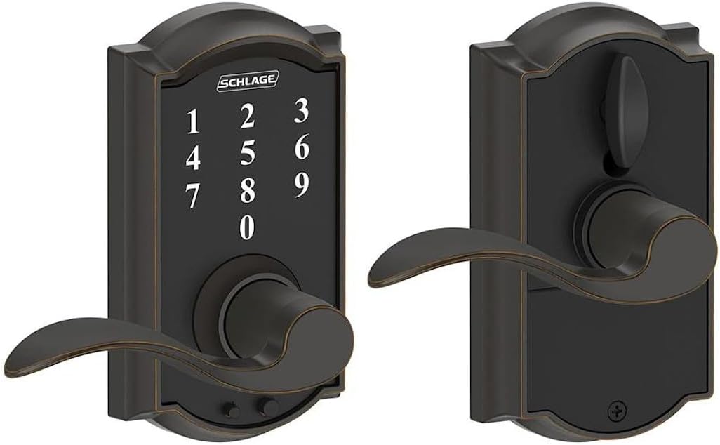 Schlage FE695 Camelot By Accent Keyless Touch Lever Lock with 16211 Latch 10063 Strike Aged Bronze Finish