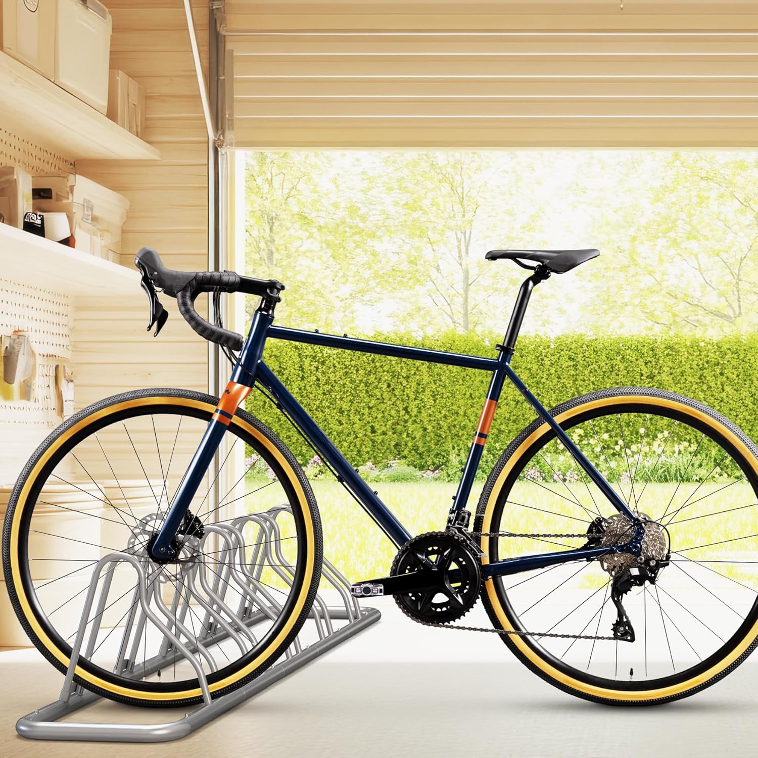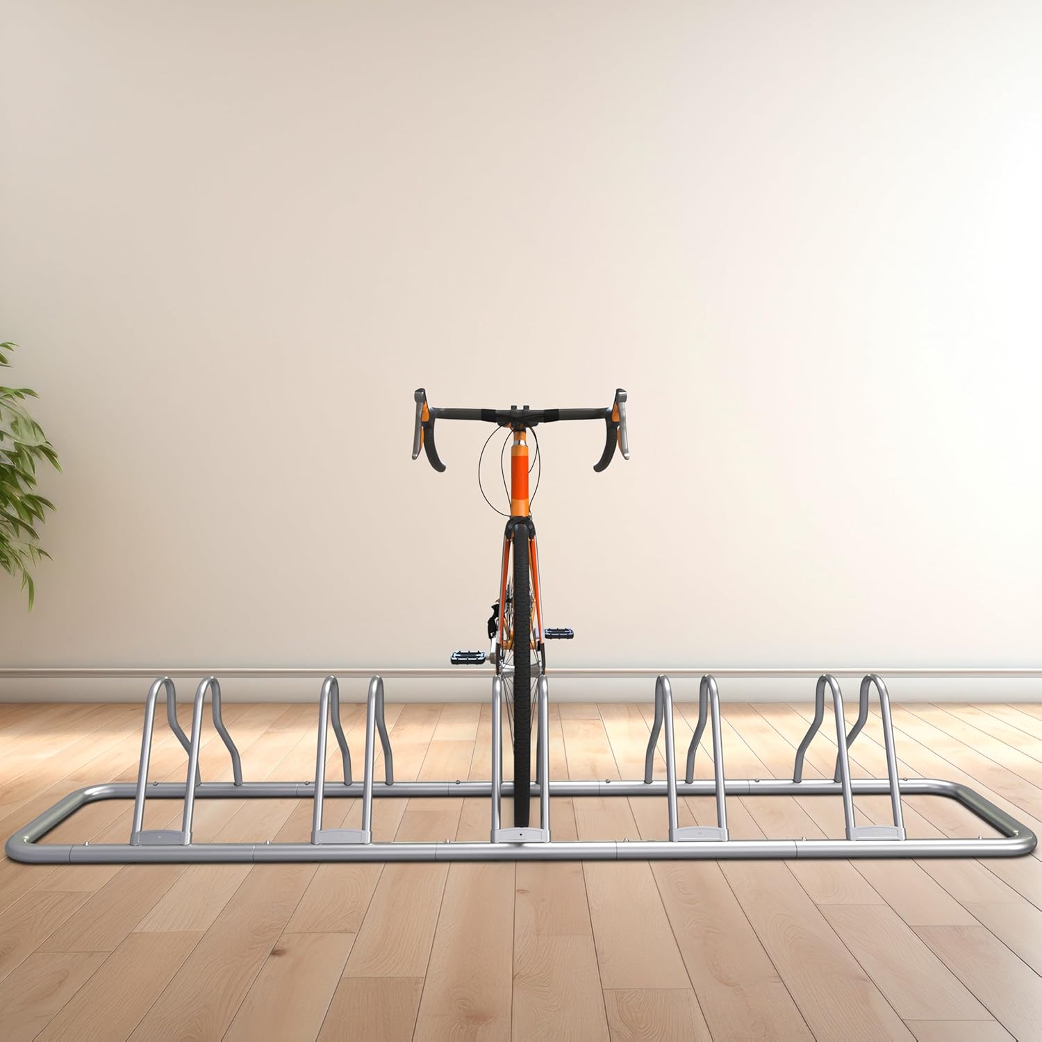 Simple Houseware 5 Bike Bicycle Floor Parking Adjustable Storage Stand, Silver
