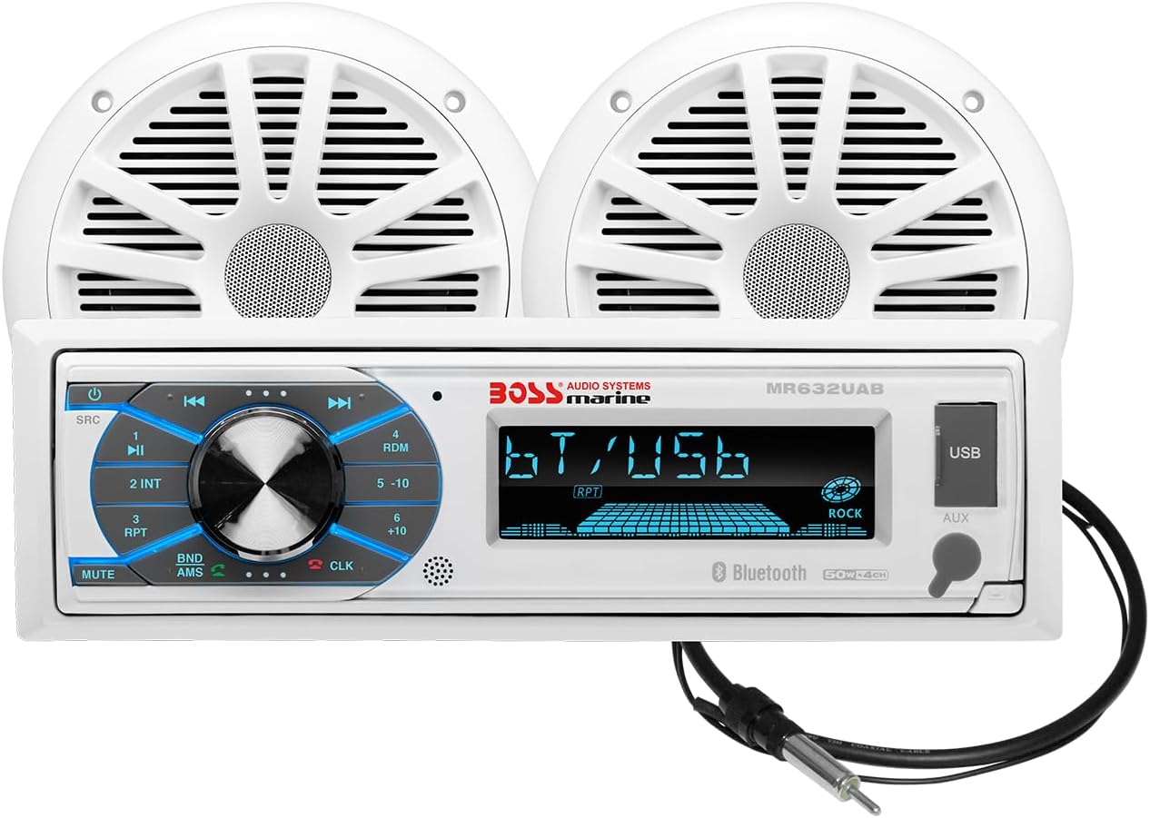 BOSS Audio Systems MCK632WB.6 Marine Boat Bluetooth Stereo & 6.5 Inch Speakers - No CD DVD Player, AM/FFM Radio Receiver Head Unit, Dipole Antenna