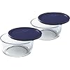 Pyrex Storage Plus 7-Cup Round Glass Food Storage Dish, Blue Cover, Pack of 2 - Original Genuine Pyrex - Made in the USA