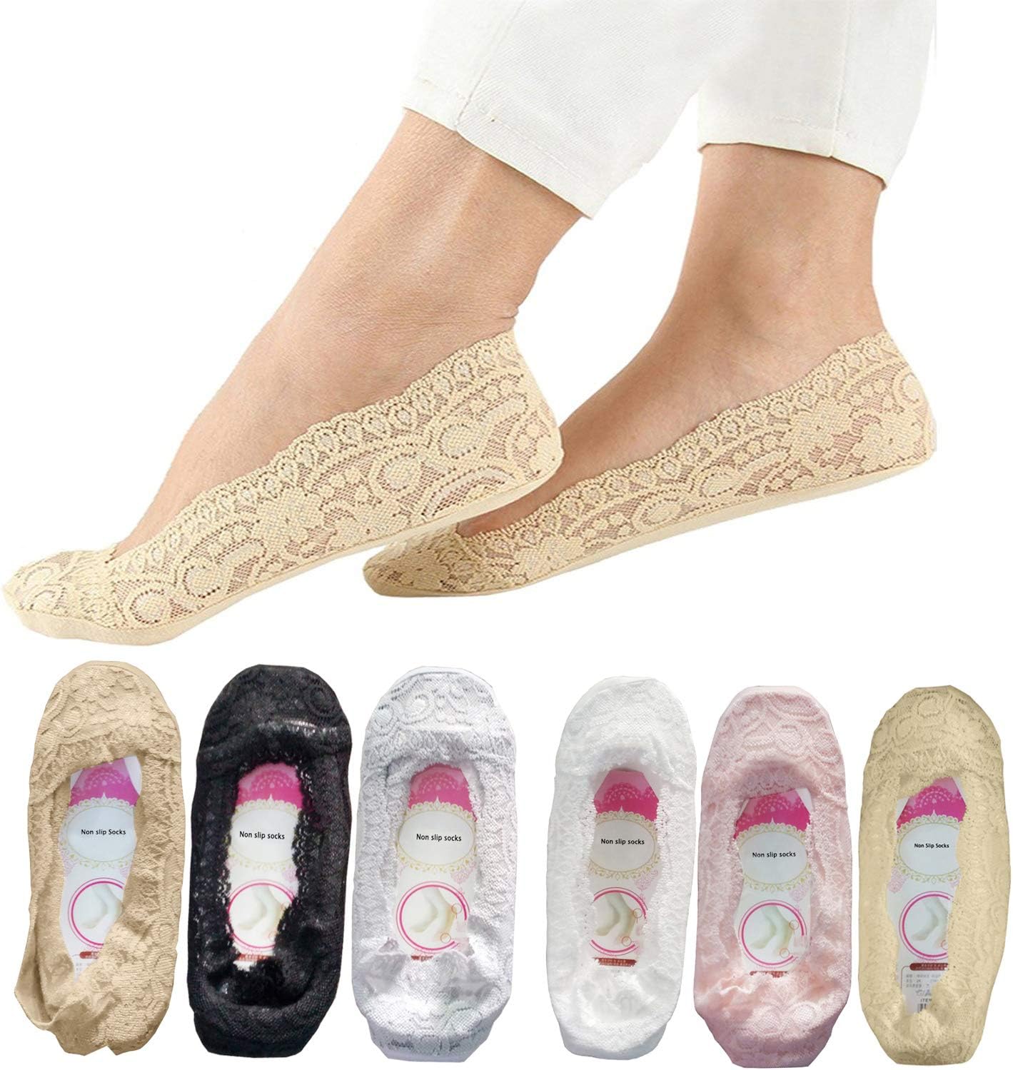 6 Pairs Lace Socks Fashion Liner No Show Socks Lace Non Slip Socks Womens Thin Low Cut Casual Socks