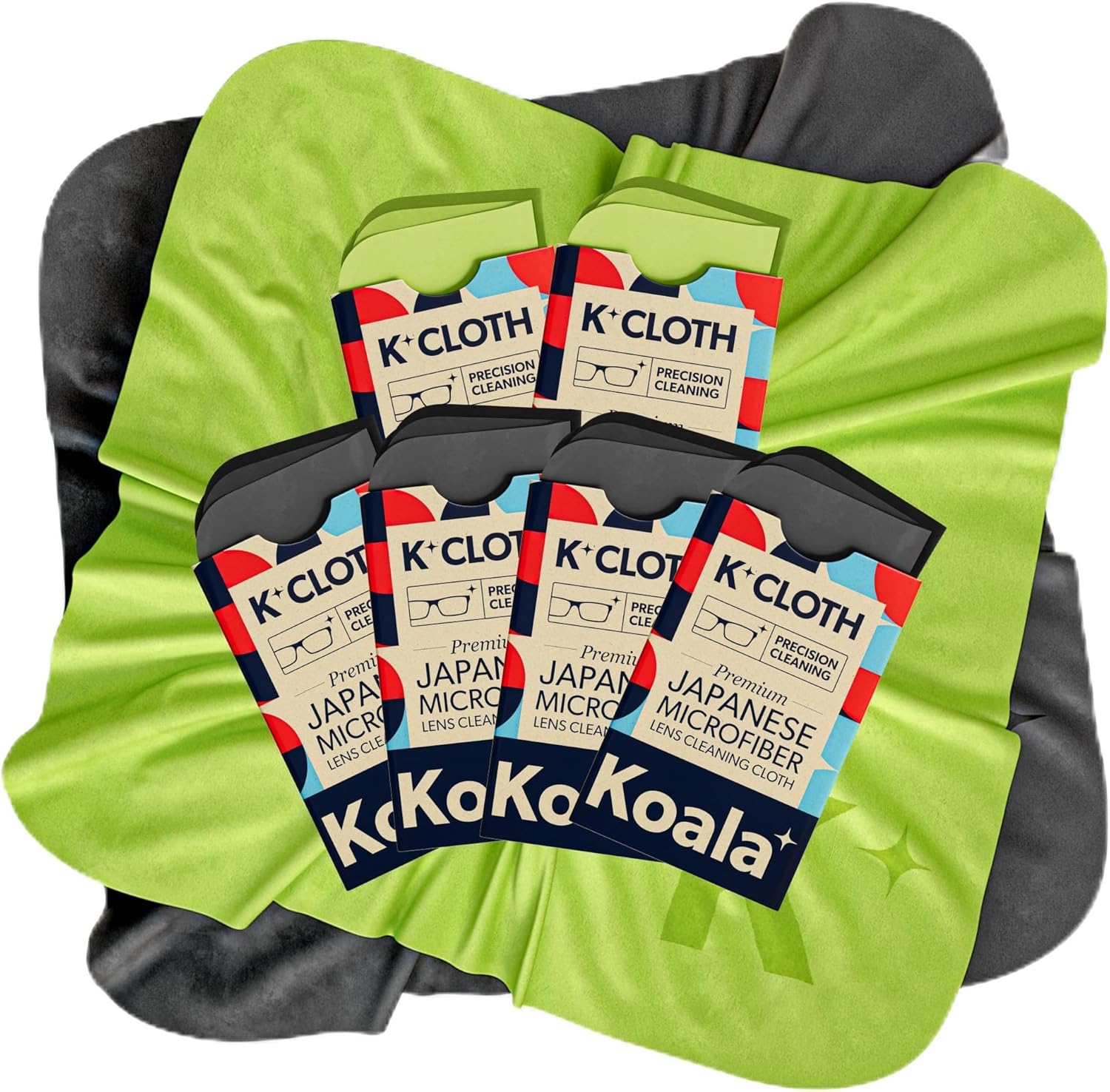 Koala Lens Cleaning Cloth | Japanese Microfiber | Glasses Cleaning Cloths | Eyeglass Lens Cleaner | Eyeglasses, Camera, VR/AR Headset, and Screen Cleaner | Black & Green (Pack of 6)