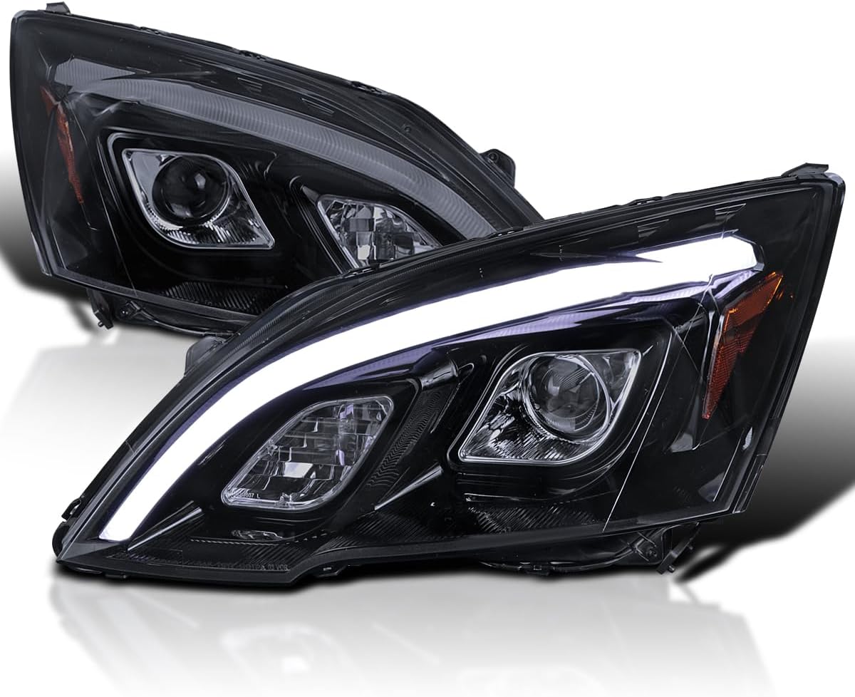SPEC-D TUNING JDM Glossy Black Smoke LED Projector Headlights Compatible with 2007-2011 Honda CR-V, Left + Right Pair Headlamps Assembly