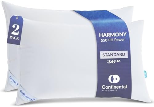Continental Bedding | Harmony White Down Pillow | 550 Fill Power | 400 Thread Count Cotton Cover | Made in USA | King, Firm | 2 Pack