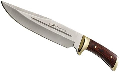 MUELA JABALI-21R Hunting Knife 8. 25 inch X50CrMoV15 (1. 4116 German Stainless Steel) Plain Edge Clip Point Blade. Features a Coral Packwood Handle with Brass Bolsters. Overall length 13. 375 inches. Comes with Full Grain Leather Sheath and MUELA Lifetime .