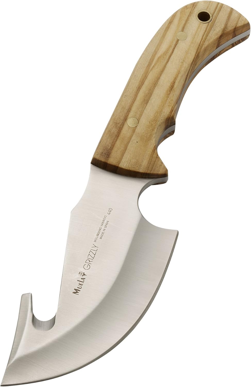 MUELA GRIZZLY-12OL Hunting Knife with 4. 875 inch X50CrMoV15 (1. 4116 German Stainless Steel) Blade. Features Olive Wood Handle. Overall length 9. 25 inches. Comes with Full Grain Leather Sheath and MUELA Lifetime .