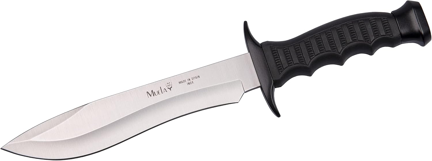 Muela 85-181, 420H, 7-1/8" fixed blade tactical knife, black handle. Blade type: 420H. 7-1/8" fixed blade tactical knife. Black handle