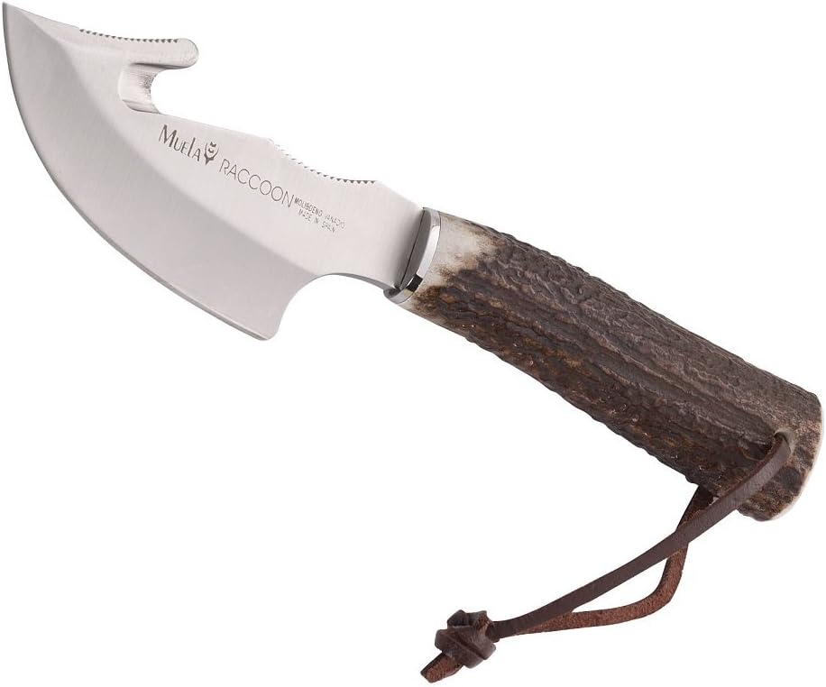MUELA RACCOON-8A, X50CrMoV15, 3-1/8" Fixed Blade Skinning Knife, Deer Horn Handle. Blade Type: X50Crmov15. 3-1/8" Fixed Blade Skinning Knife. Deer Horn Handle
