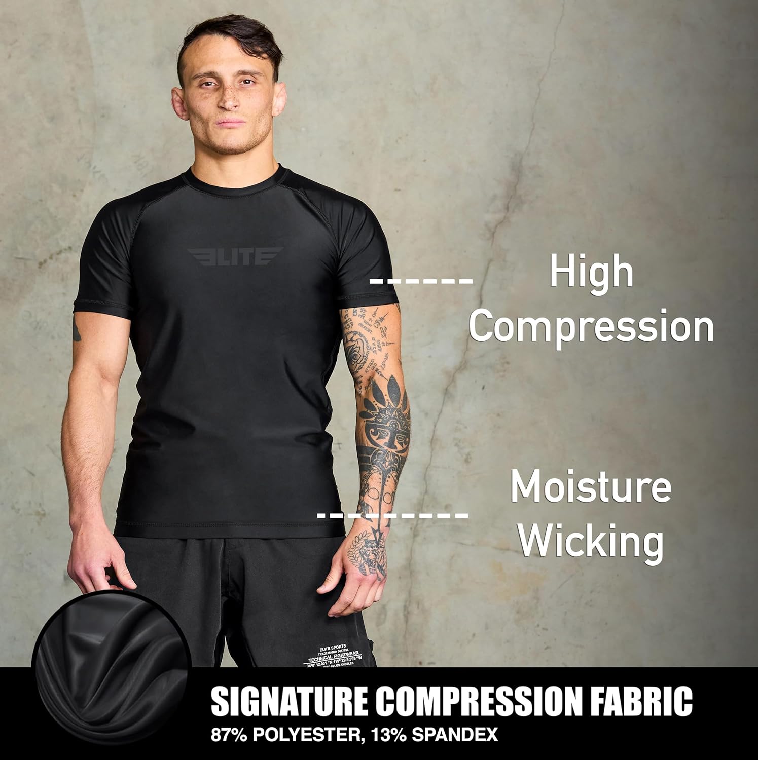 Elite Sports Jiu Jitsu BJJ Rash Guards, Men’s BJJ, No GI, MMA Ranked Short Sleeve Compression Base Layer Rash Guard