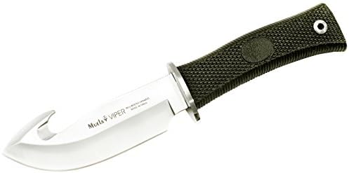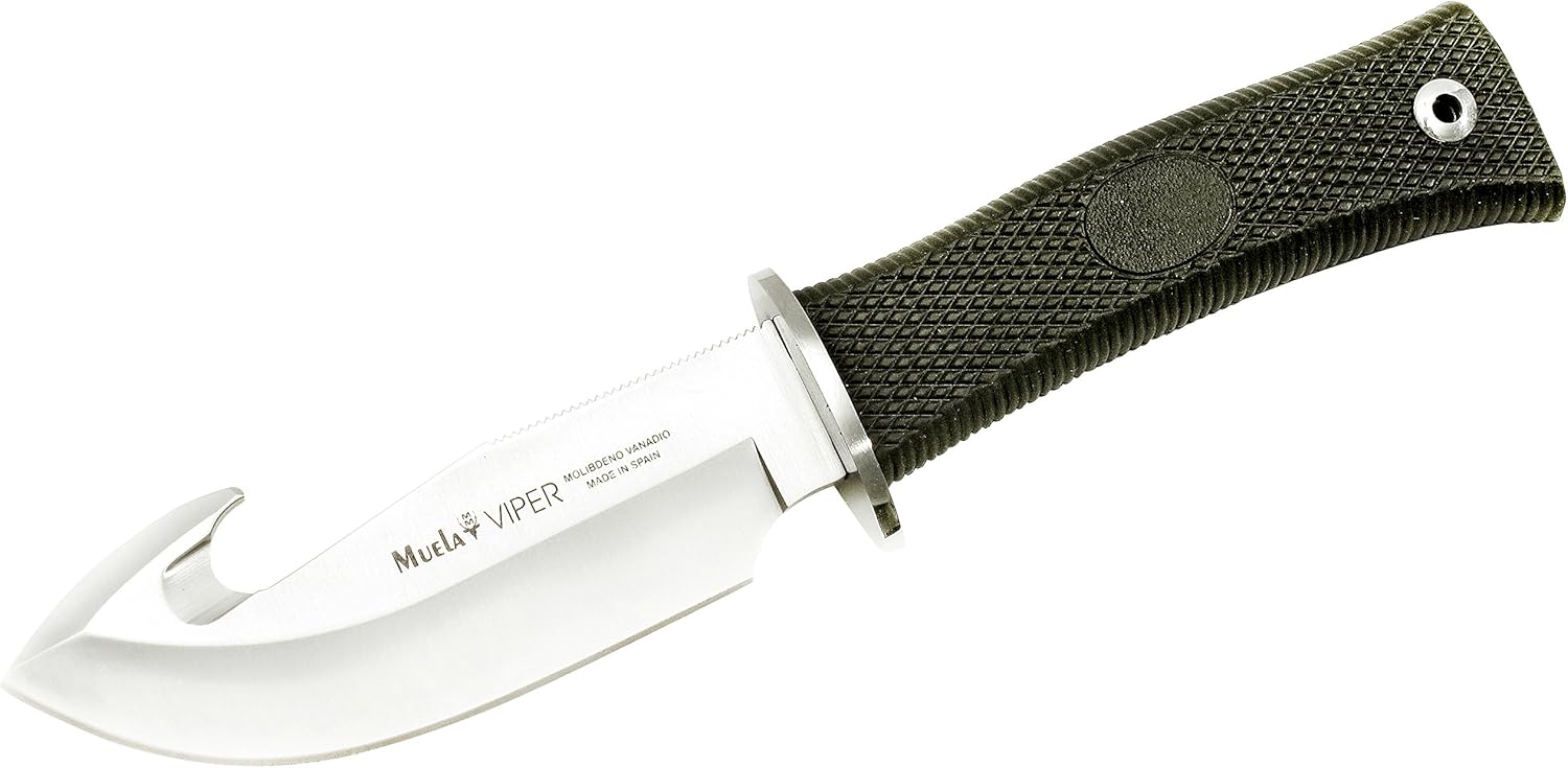 MUELA VIPER Survival knife with 4. 375 inch X50CrMoV15 (1. 4116 German Stainless Steel) blade. Features a Rubber Handle with Stainless Steel Guard. Overall length 8. 5 inches. Comes with Leather Sheath and MUELA Lifetime