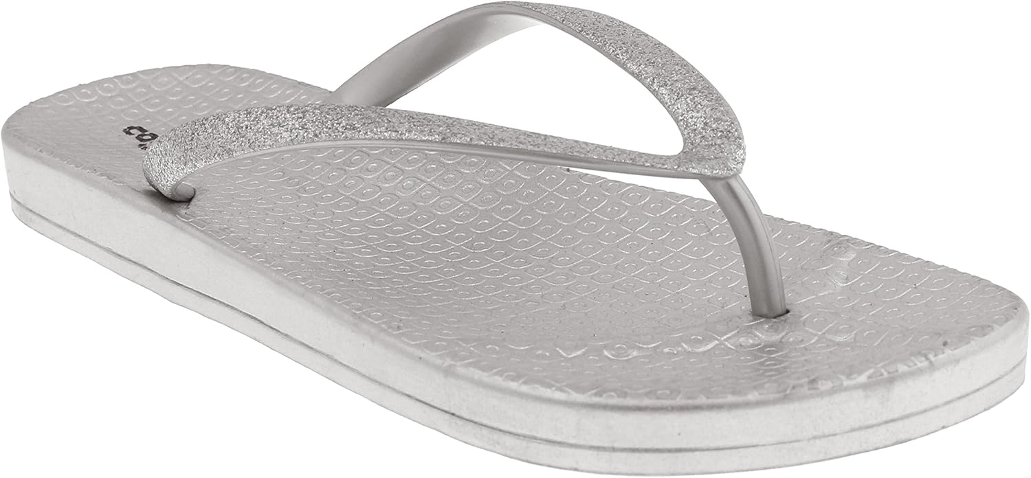 Ladies Glitter, Flexy Body Fashion Flip Flops Silver 11