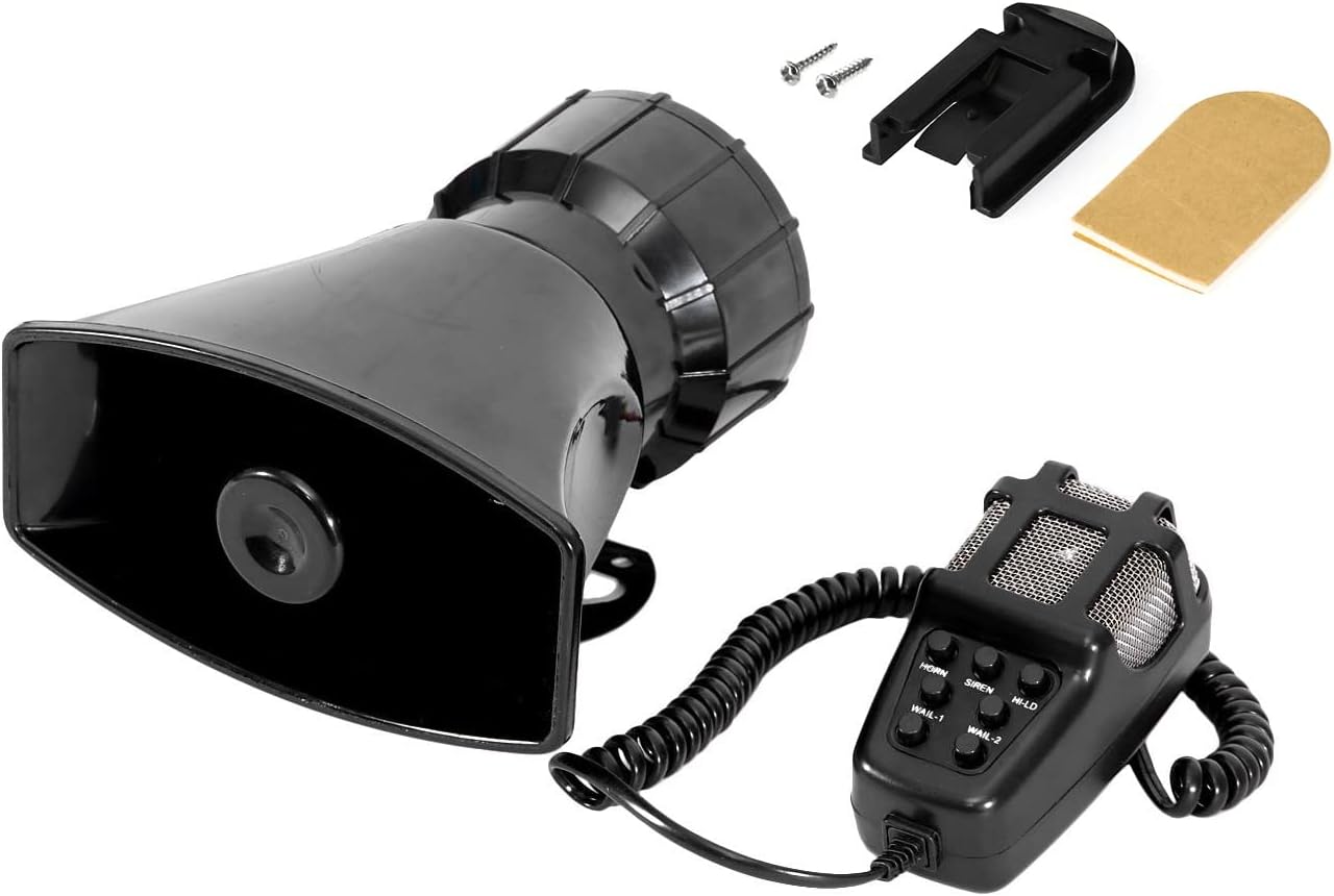 PARTOL Car PA System Truck Siren Horn 7 Tone Sound with Mic PA Speaker Vehicle Siren Megaphone Speaker 100W 12V Emergency Sound Amplifier with Microphone Police Fire Ambulance Hooter Traffic Sound