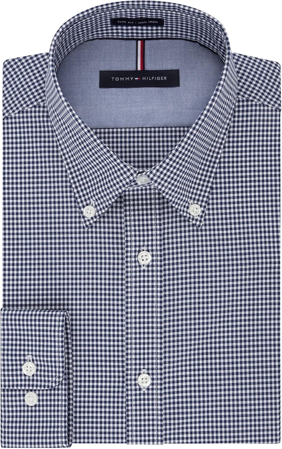 Tommy Hilfiger Men's Slim Fit Non Iron Gingham Dress Shirt - Amazon Exclusive
