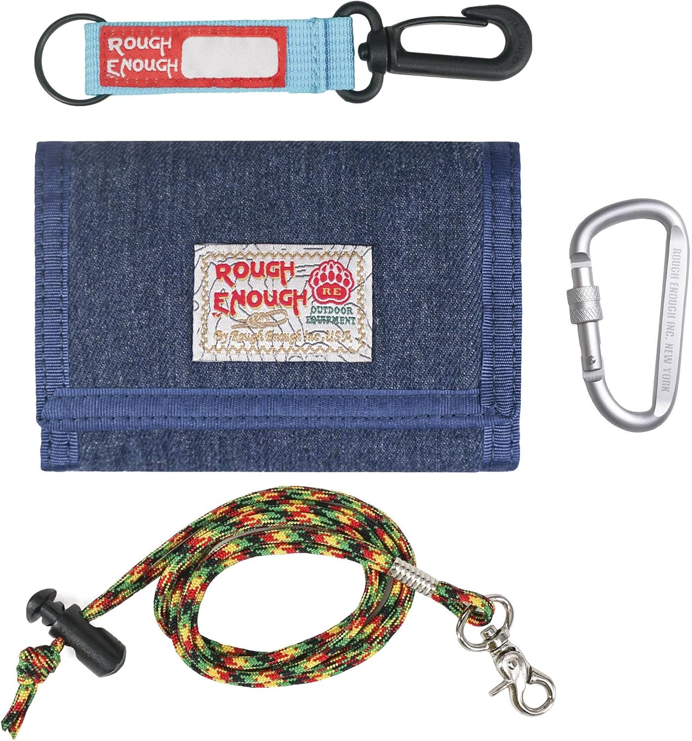 Rough Enough Kids Wallet for Boys Girls Preppy Teen with Neck Lanyard Keychain Canvas Denim Blue