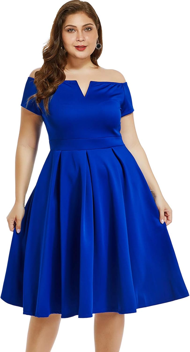 LALAGEN Women's Plus Size Vintage 1950s Party Cocktail Wedding Swing Midi Dress
