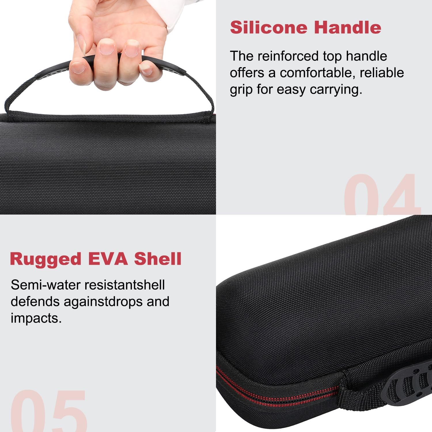 100% SAFE: Hard quality EVA material is Semi-waterproof, Shockproof and Durable to protect your Speaker from impacts and splashes.
