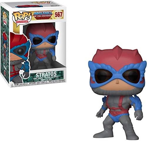 From Masters of the universe, Stratos, as a stylized pop vinyl from Funko! figure stands 3 3/4 inches and comes in a window display box. Check out the other Masters of the universe figures from Funko! collect them all!