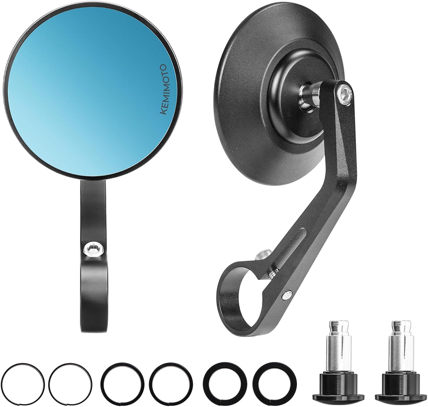 Espejos retrovisores KEMIMOTO para manillar de motocicleta, retrovisores CNC de aluminio de 7/8" con lente antideslumbrante azul, ajuste universal para motocicletas, bicicletas eléctricas, scooters, ATVs - Diseño redondo para una vista clara y amplia