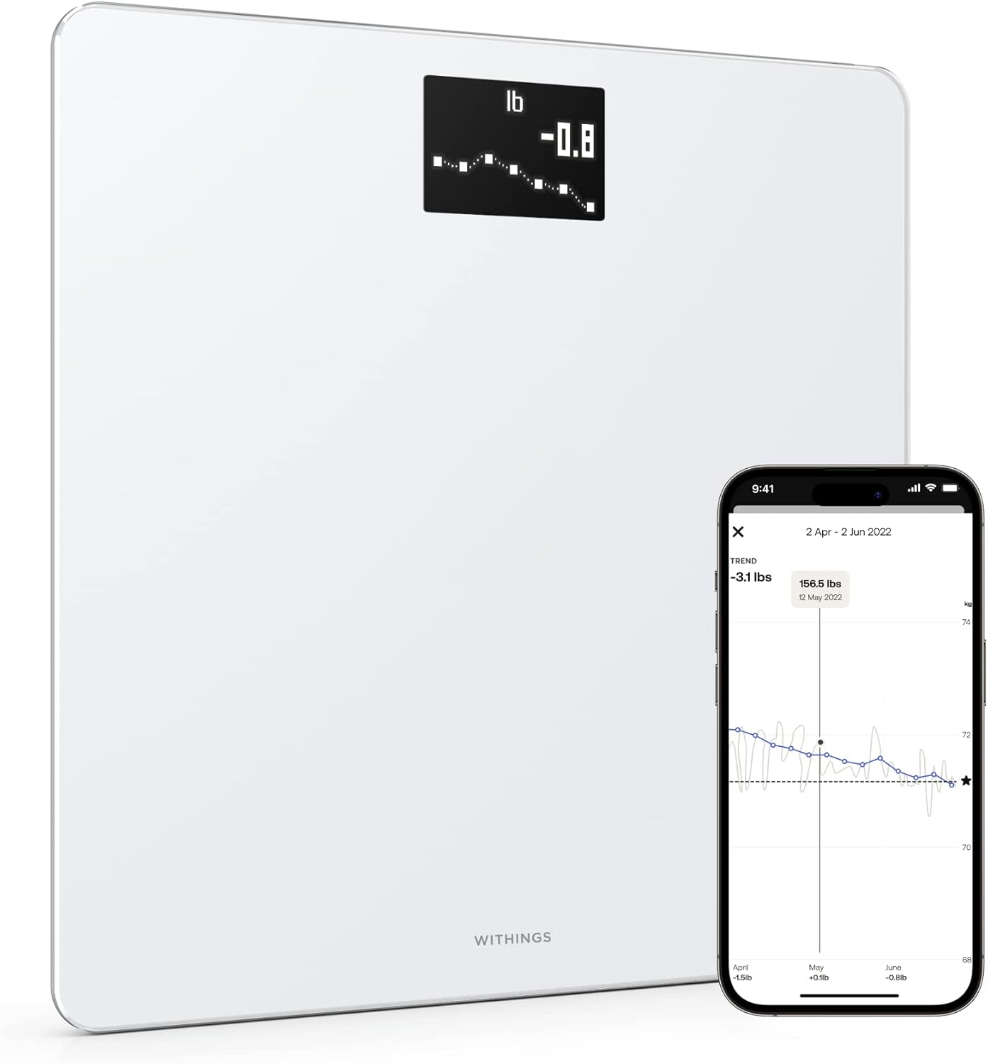 Withings Body: báscula inteligente con Wi-Fi digital con sincronización automática de aplicaciones para teléfonos inteligentes, IMC, fácil de usar, con rastreador de embarazo y modo bebé