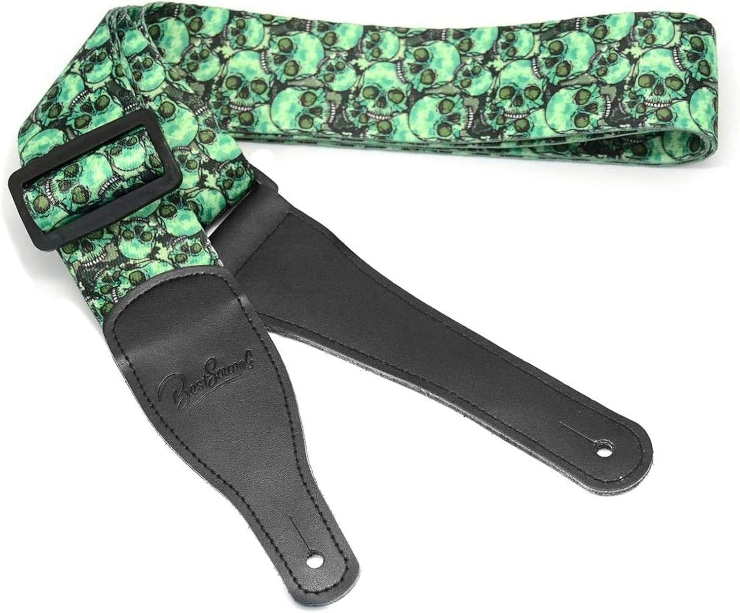 Skull Green Guitar Strap - Cool Nylon Strap with Ties for Electric & Acoustic, Bass Guitars