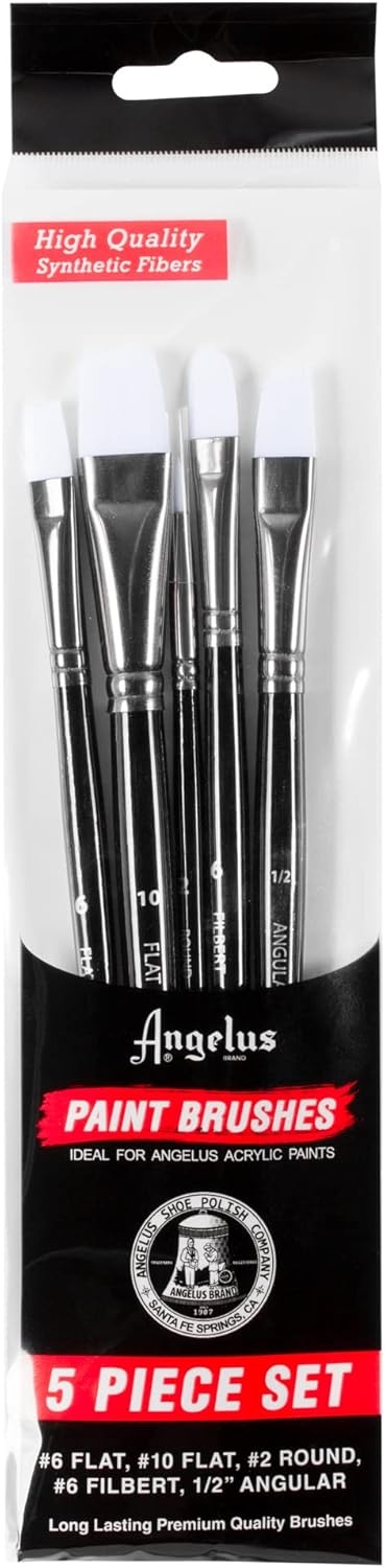 Conjunto de pinceles Angelus Paint Brush Set Redondo Plano Angular para pintura de artistas acrílica, conjunto de pinceles de pintura de zapato (5 piezas)