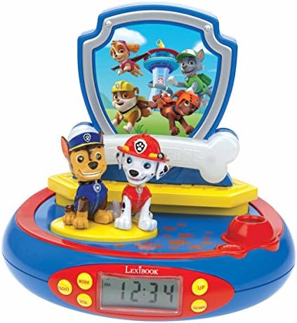 "Paw Patrol projector alarm clock to immerse you in the heart of the game! Press the ""PROJECT"" button to project the timeon the ceiling. Listen to 4 amazing sound effects by pressing Chase and Marshall. For a quiet night, press the base to switch on a cosy night light that lasts for up to 15 minutes. Digital time display on the LCD screen. Alarm with ""snooze"" function. Power supply: 4 LR6/AA batteries (not included). Designed and developed in Europe – Made in China Warranty: 2 years"