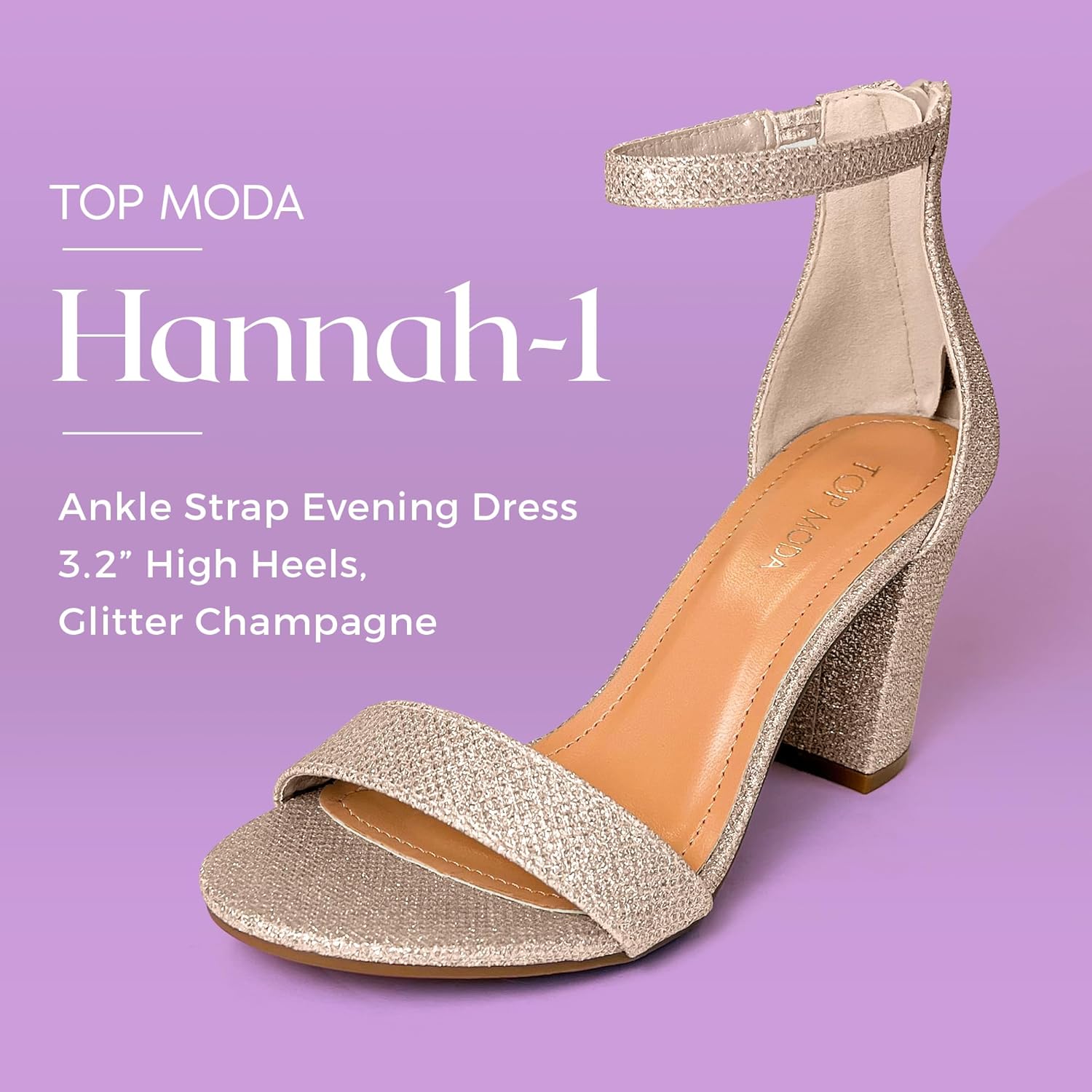TOP MODA Hannah-1 Ankle Strap Dressy High Heel Sandal, Non-slip Sole, For Wedding, Party, Prom, Evening Wear, or Any Occasion, Sleek Style Block Heel Sandals