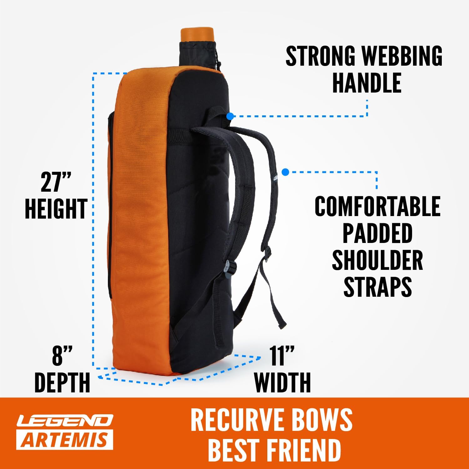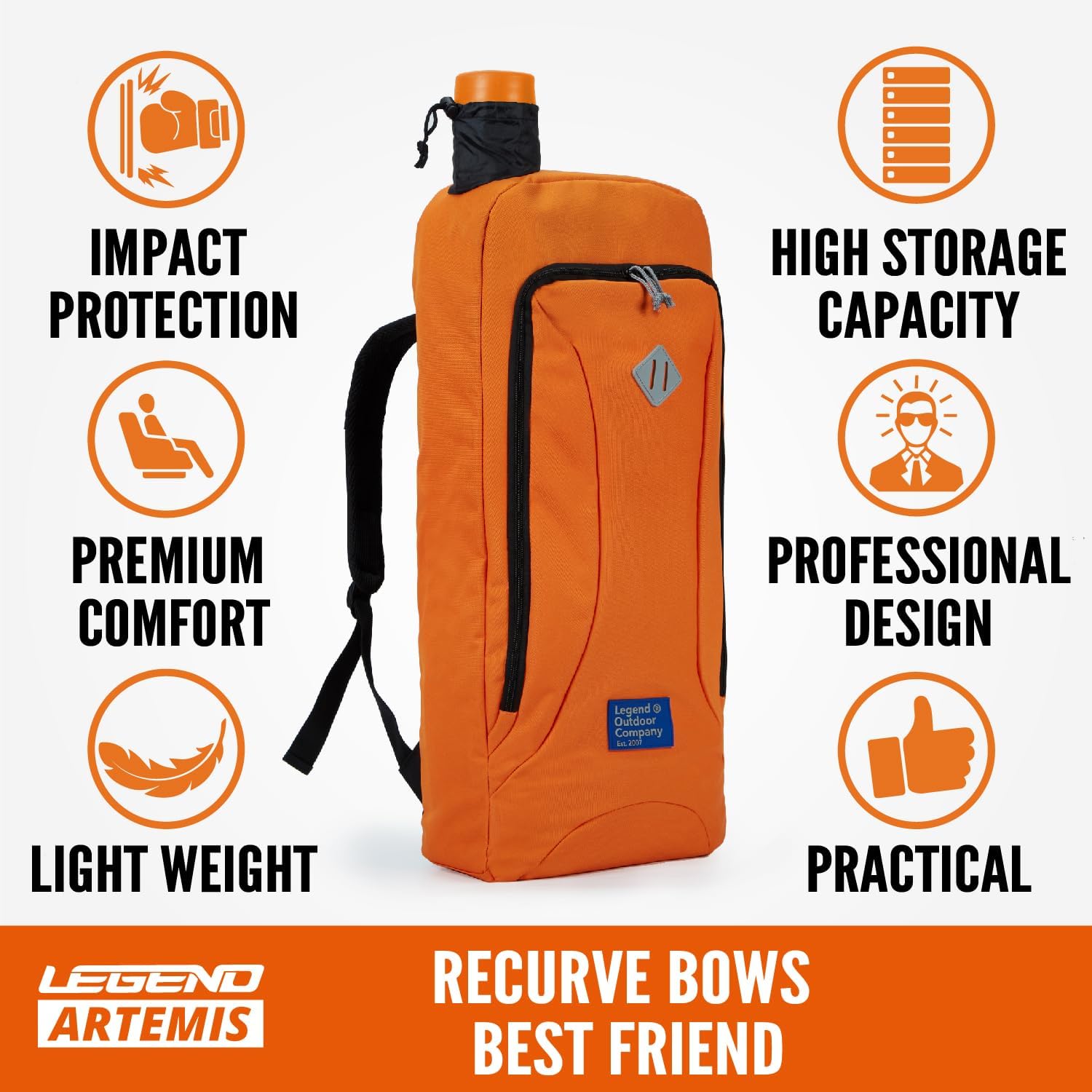 TOTAL PROTECTION; With a super thick expanded foam padding on all surfaces and 600D Oxford polyester, the LEGEND Artemis recurve backpack bag will keep your valuable recurve bow fully protected from accidental drops, shocks and impacts