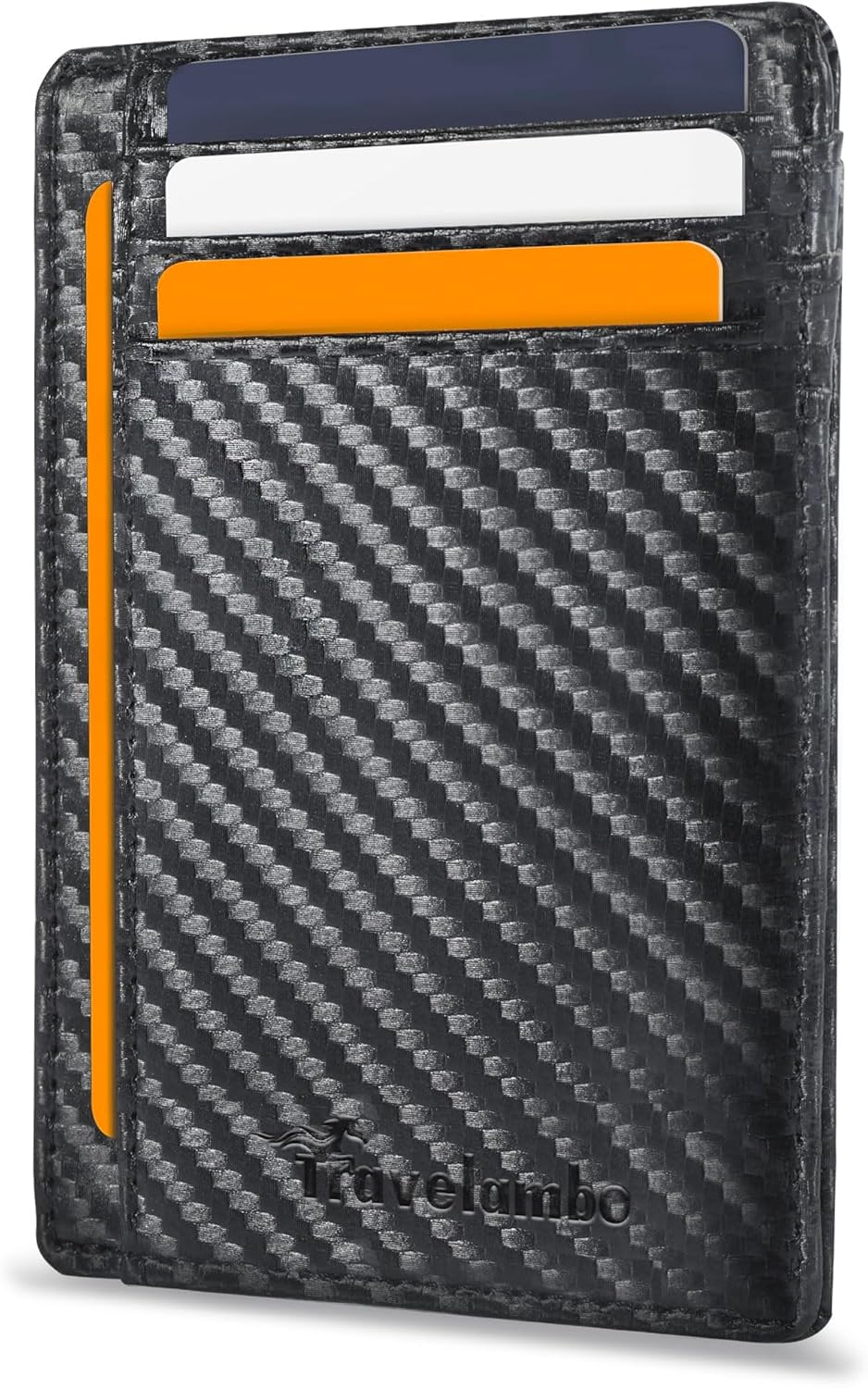 Cartera delgada minimalista de cuero con bolsillo frontal Travelambo que bloquea RFID con textura de fibra de carbono