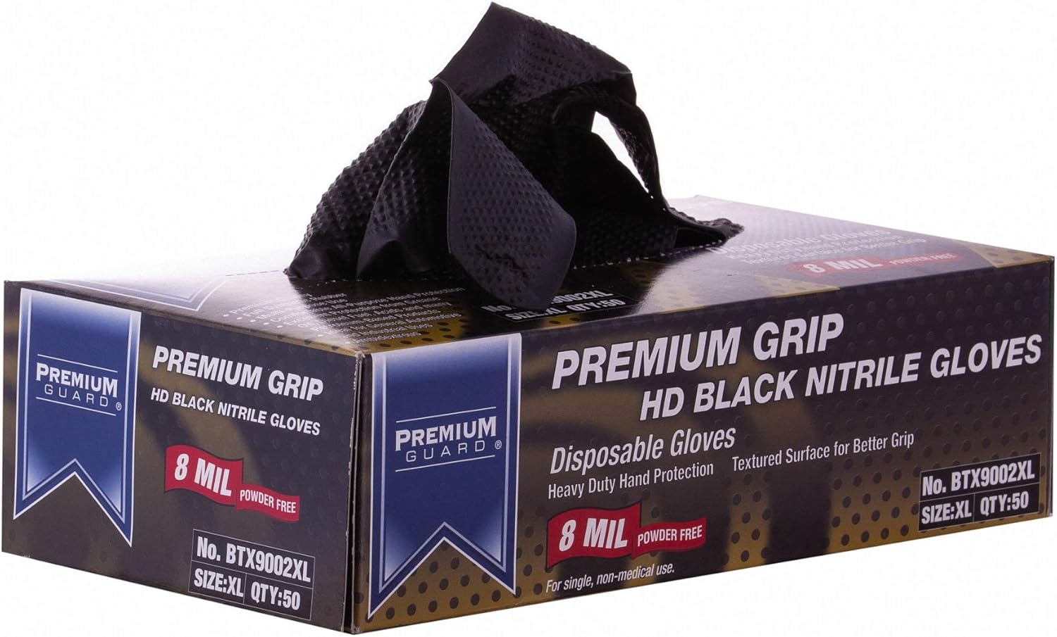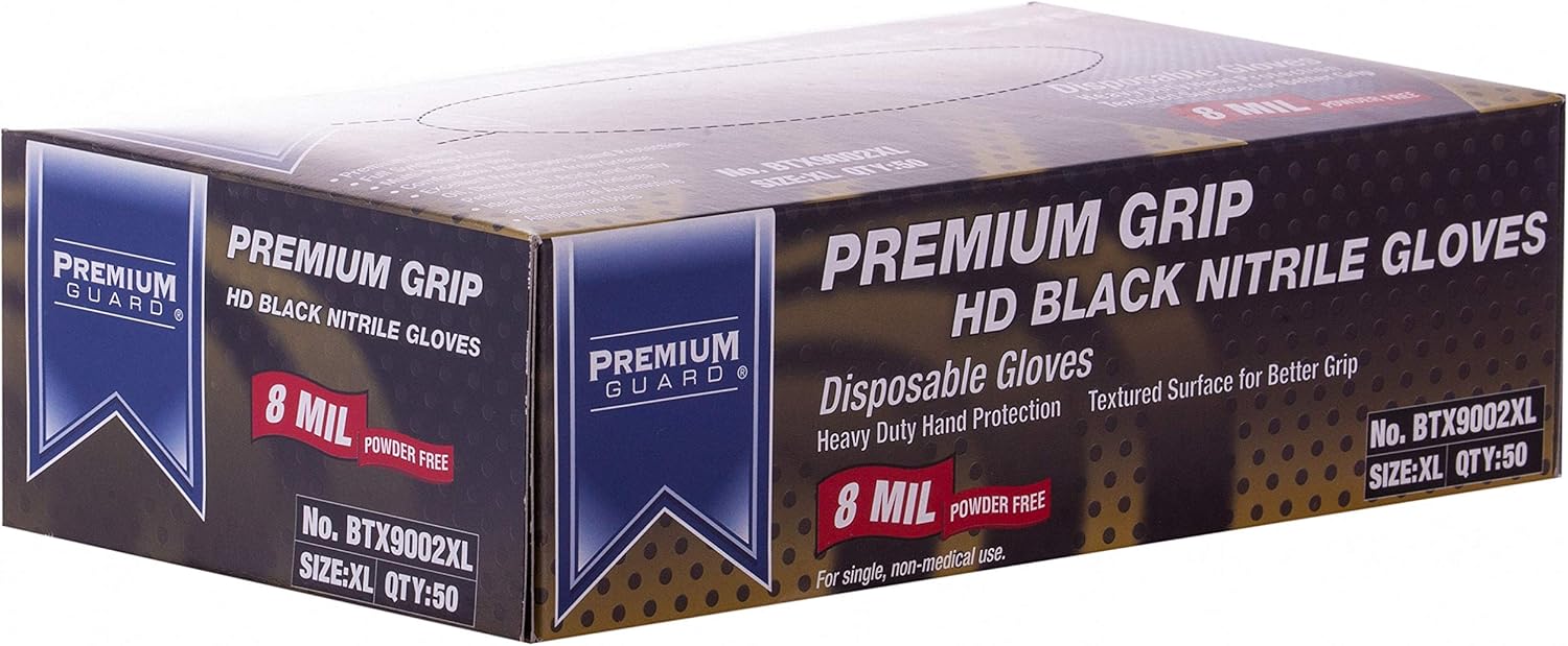 Premium Guard - Nitrile Gloves Heavy Duty 8 Mil Disposable, Powder Free, Black, 50 Gloves per Box (X-Large)