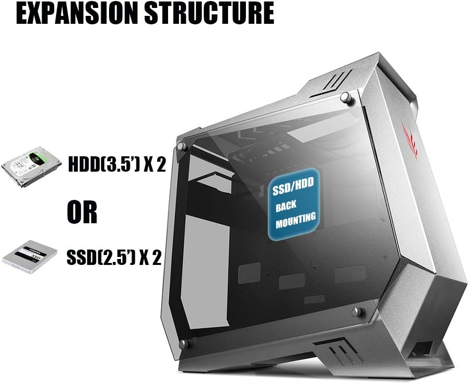 compatible con 2 HDD de 3.5 «y 2 SSD de 2.5», coloque el disco duro en el panel posterior.