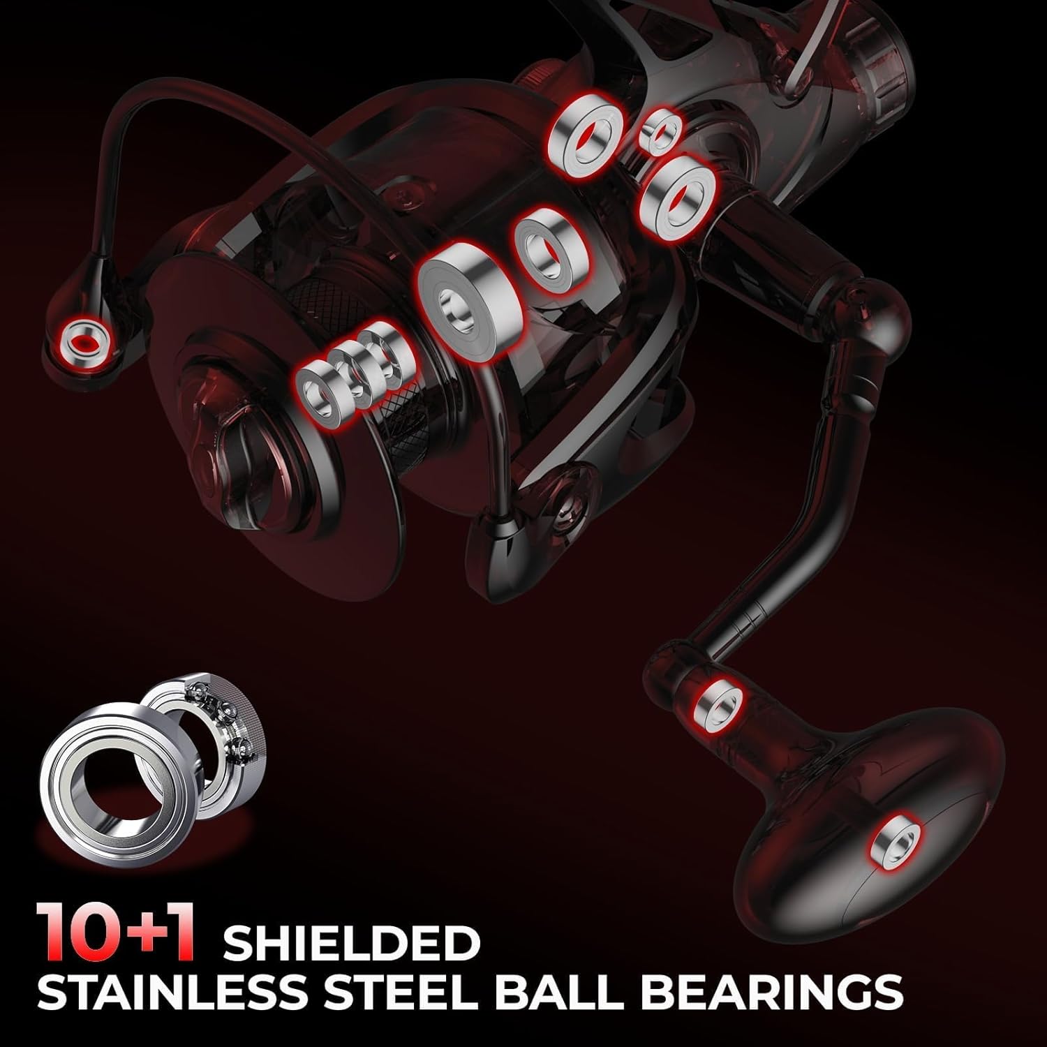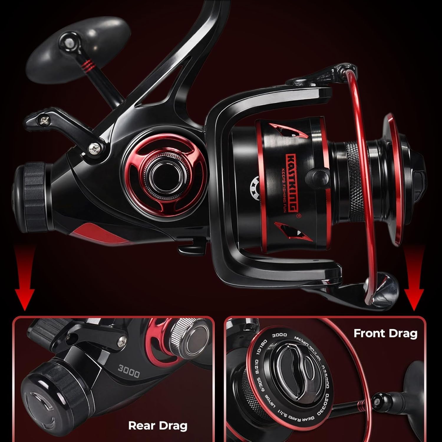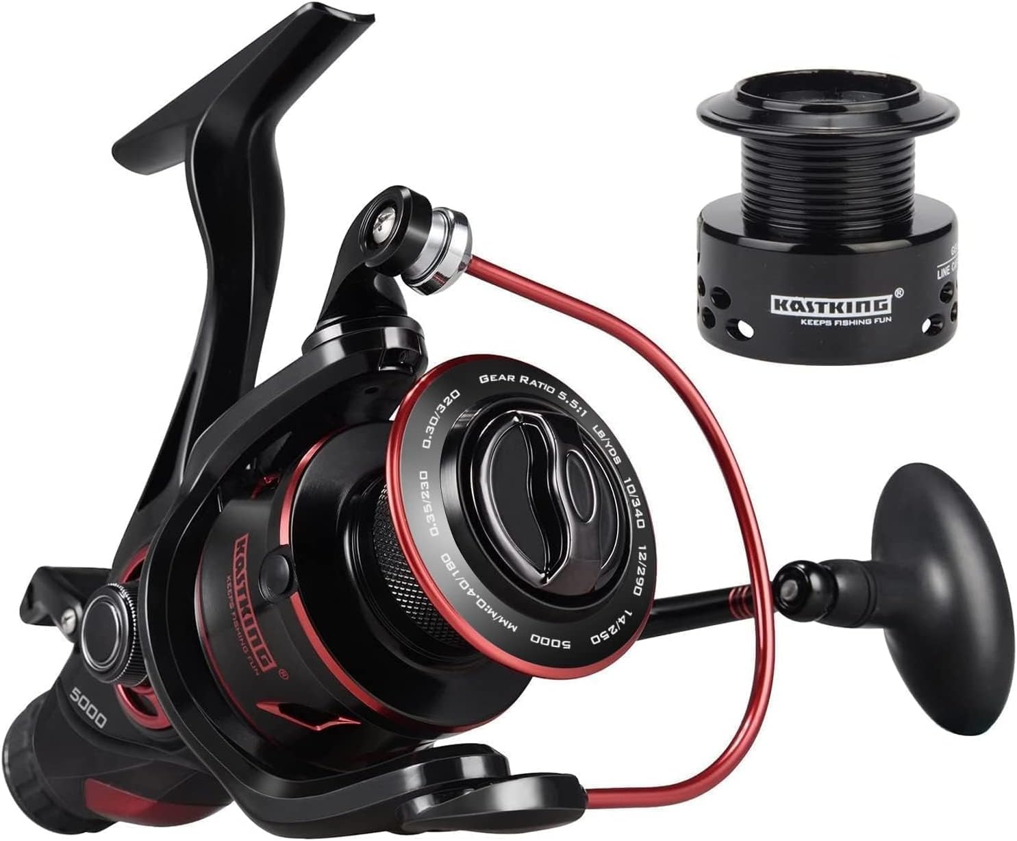 KastKing Sharky Baitfeeder III Spinning Reel 10+1 BB blindado de acero inoxidable - Arrastre de fibra de carbono para la acción de pesca con cebo vivo