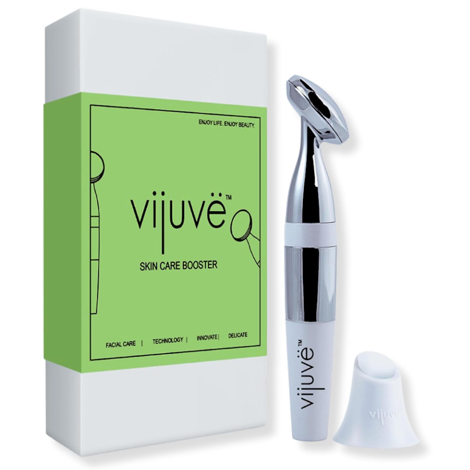 At Home Face Massager for Skin Tightening and Cream Boosting is a state of the art personal salon and spa equipment from team Vijuve for beauty and personal care enthusiasts. This cordless and battery powered anti-aging machine can help you save your at home facial time by 75%. Are You Using The Best Anti-Aging & Anti-Wrinkle Face Products Without Any Results? The Vijuve Device is built specifically to help the face skin products absorb deeper to give you instant results. If your face cream/serum/lotion contains ingredients like Peptides, Vitamin C & E, Retinol, Hyaluronic Acid, Silk Amino Acids etc. then this tool is “Must Have”! As it can bring 6 times better and quick results. With Usual “Hands Alone” application, skin products may not absorb/penetrate as they should be. After all how much human hand can circulate! The 9,000 per min. High Frequency vibrating microspheres help push the product into the skin, resulting in increased absorption. You Should Use Vijuve Face Massager for Women & Men To: → Prevent Crepey Skin and Aging Signs by lifting the face contours and removing face wrinkles and fine line wrinkles around eyes. → Distribute the applied creams, serums and lotions evenly and rebuild the collagen of your skin. → Resurface and tighten the skin by taking off dark spots. → Get rid of dark eye circles and maintain a fresher look with soft and glowing skin. Based On The Results Of Survey With 100 Users: → 90% of users said that the Vijuve Device made their existing products work better. → 80% of users said they couldn't believe how much faster they saw results by adding this device. → 2 times as many users stated that they were satisfied with their appearance after using VIJUVE. The Vijuve Face Massager is FDA Registered, pain free, quick, safe for home use, and can be used with your favorite skin care products.