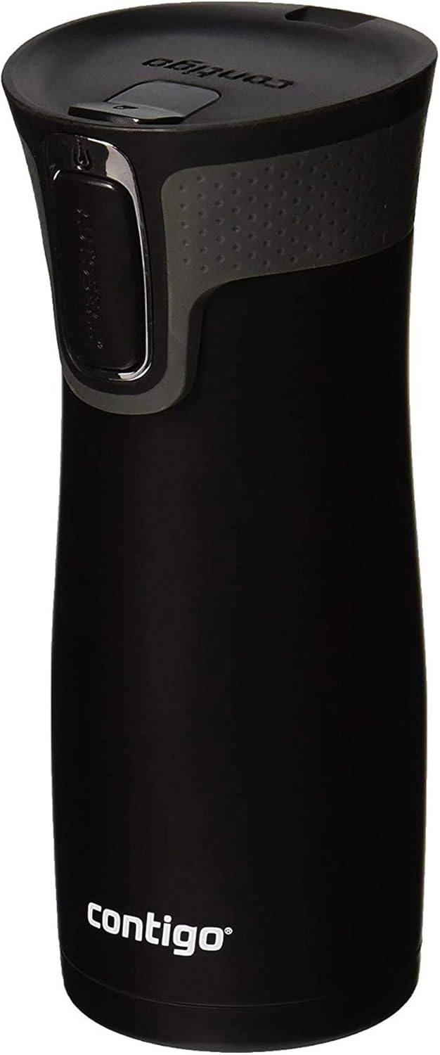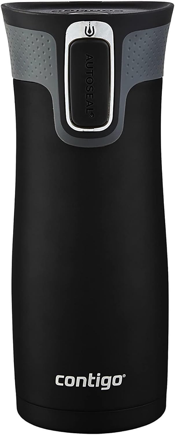 Jarra de viaje de acero inoxidable aislada al vacío Contigo West Loop con tapa a prueba de derrames, mantiene las bebidas calientes hasta 5 horas y frías hasta 12 horas, 16oz negro mate