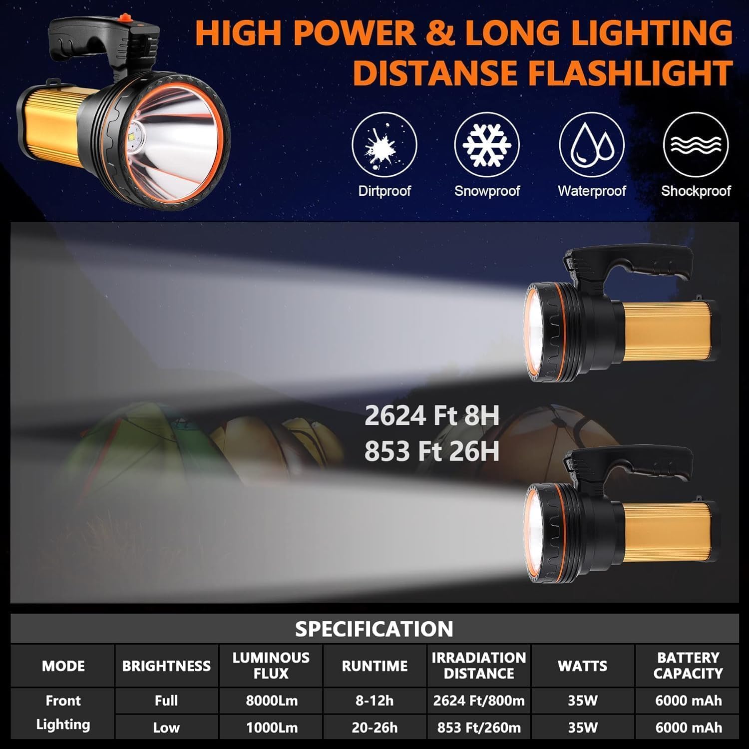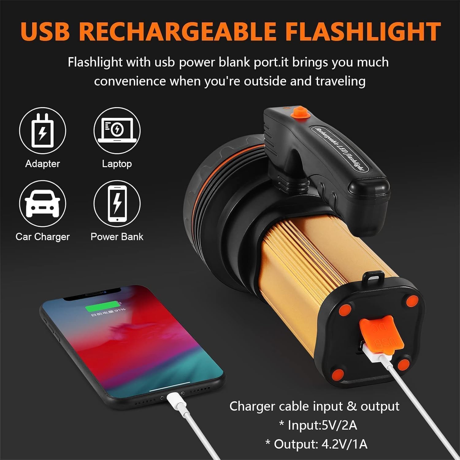 Flashlights High Lumens, Lumens Spotlight Flashlights, IPX5 Waterproof Flashlight, Rechargeable Spotlight with Shoulder Strap for Camping Hunting Emergencies Outdoor (Gold)