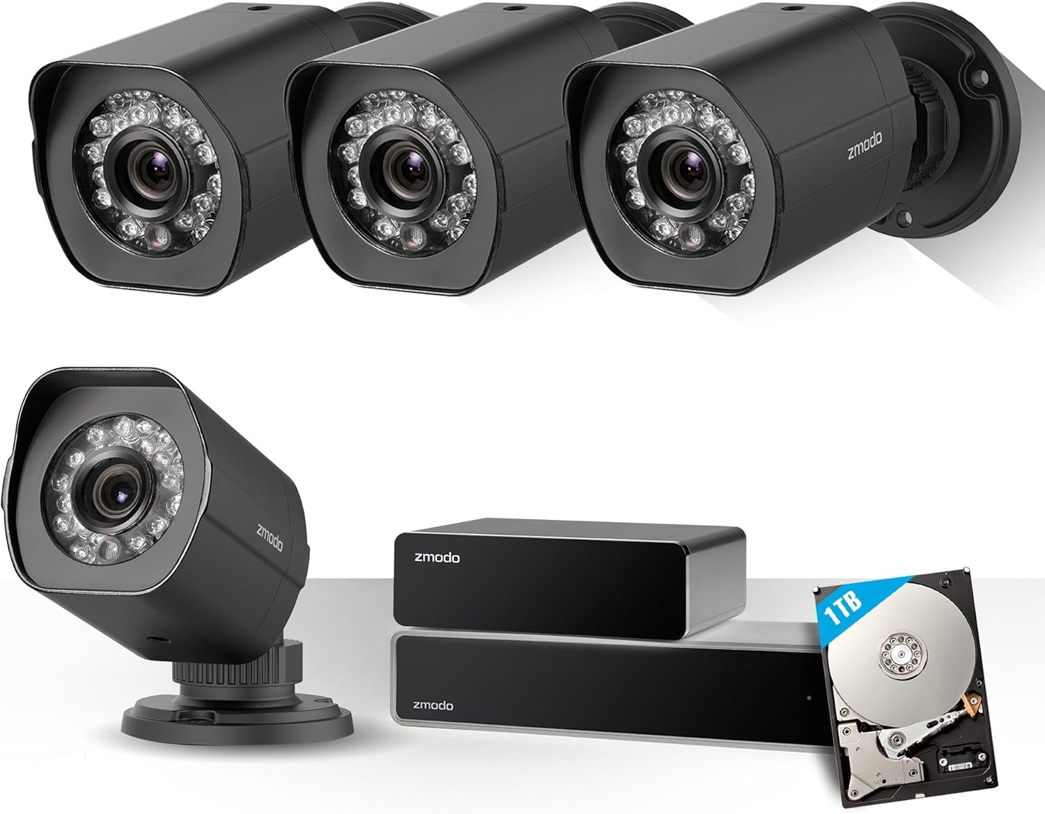 Zmodo Full HD 1080p Simplified PoE Security Camera System w/Repeater, 4 x 2.0 Megapixel IP Outdoor Surveillance Camera, 8CH HDMI NVR and 1TB Hard Drive