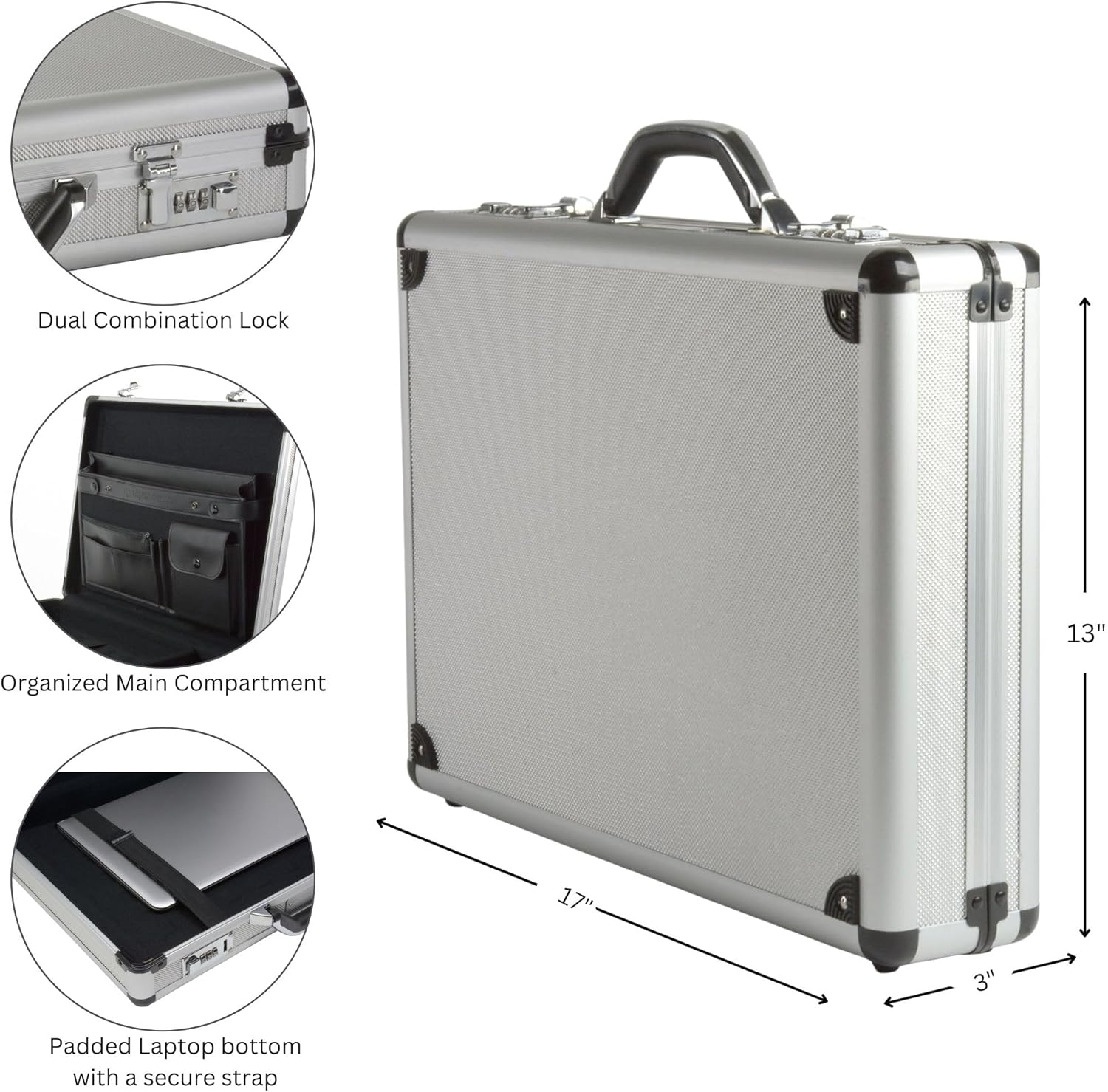 SLICK & PROFESSIONAL: Alumin Outer looks amazing, and the interior is lined with faux leather trim for a stylish touch. A padded bottom and secure strap keep your laptop and documents safe inside the aluminum briefcase, ensuring protection while you travel.