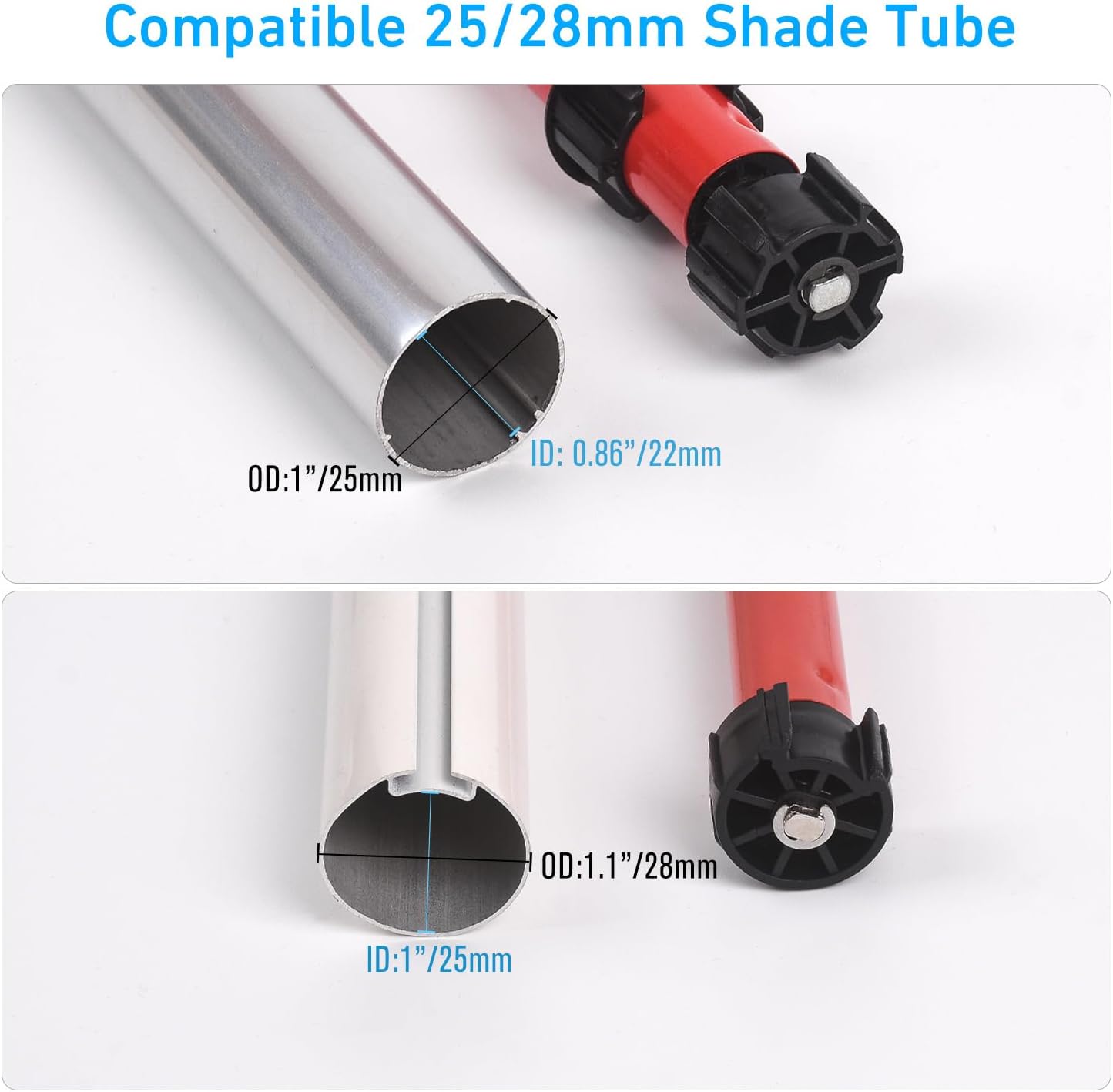 12V Wired Smart Motor – Compact DC-powered motor (adapter not included) for 25mm/28mm shade tubes; supports lightweight shades up to 2kg (4.4 lbs). Requires 12V DC power supply (sold separately). Not compatible with AA batteries or wand controls.
