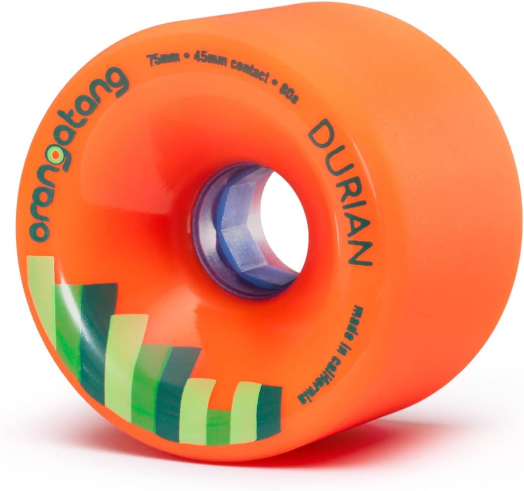 FREERIDE / CRUISING WHEELS – The Orangatang Durian is a large all-purpose longboarding wheel designed for commuting and cruising, high-speed downhill freeriding, and freestyle dancing.