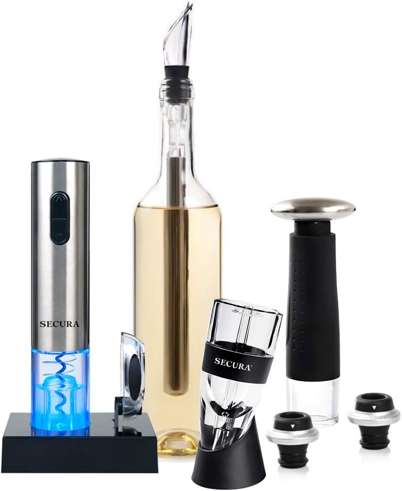 Secura Wine Lovers Gift Set 12-Piece Wine Accessories Set Electric Wine Opener, Wine Foil Cutter, Wine Aerator, Wine Saver Vacuum Pump + 2 Wine Stoppers
