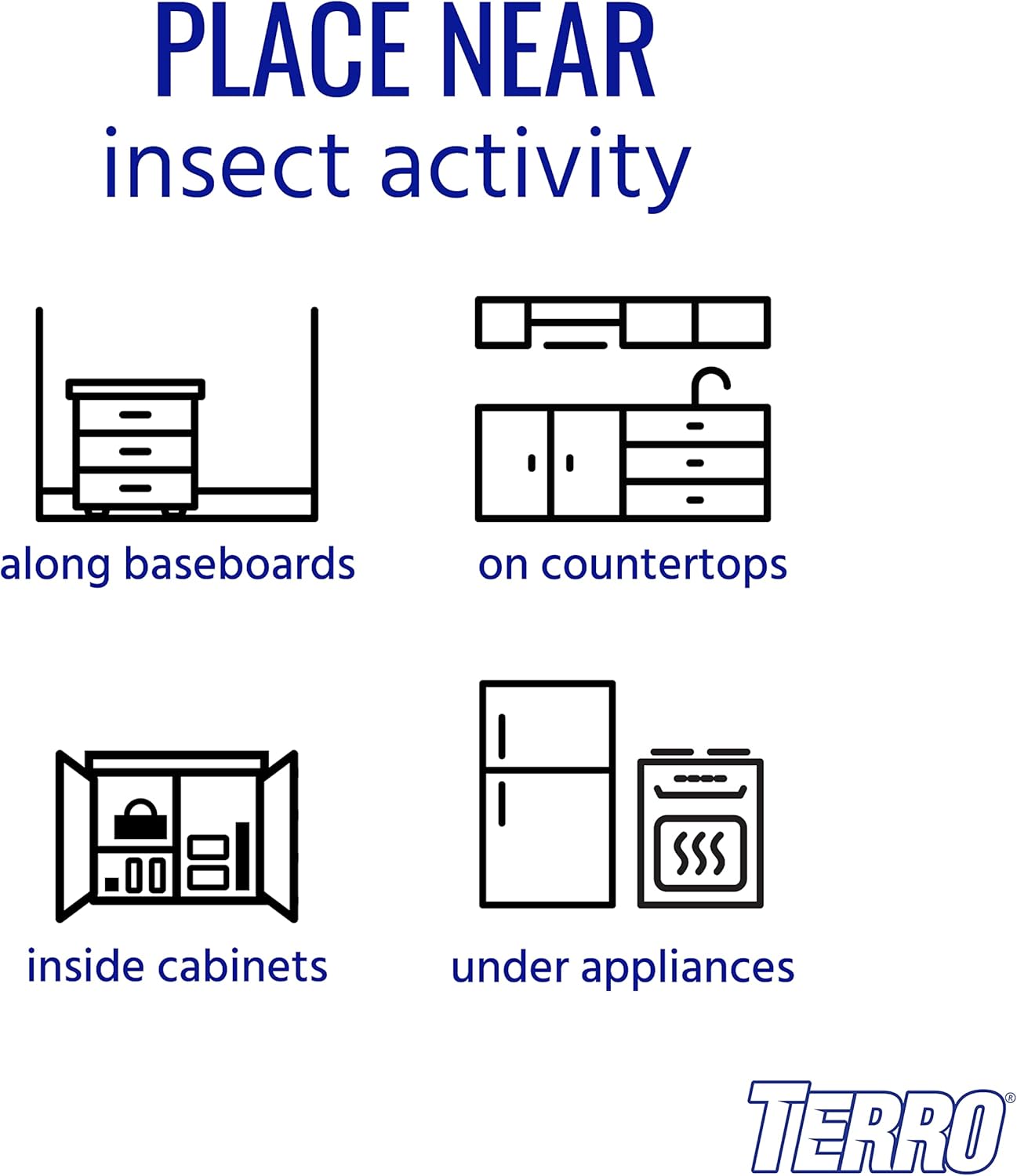 With Terro Ant & Roach bait, you get two solutions in one convenient station, eliminating the need for multiple products. The slender profile & sturdy design make this bait station perfect for placement along baseboards, in corners, on counters, under & behind appliances, on windowsills & near garbage cans. for your convenience, each of the 4 bait stations come pre-filled & ready to use. The stay-fresh tab will keep the liquid fresh until opened. When ready to use, simply break off the tab & place where insects are numerous. Since this is a bait product, you will initially see more insects as they are attracted to the stations. After the bait is consumed, insect populations will begin to decline. the liquid bait, in the top portion of the trap, is specifically designed to allow worker ants to consume the product, survive long enough to carry the liquid back to the nest & deliver a dose to the rest of the colony. Ants enter the trap, consume the liquid Ant bait & return to the nest where they pass on the bait to the rest of the colony. The active ingredient in the bait slowly interferes with the ants’ Digestive systems, eventually killing them.the paste bait, located in the base of the trap, contains protein to attract & kill roaches & silverfish, as well as non-sweet-eating ants. Insects are able to access the bait through 3 different entry points. After consuming the bait, they will slowly die.