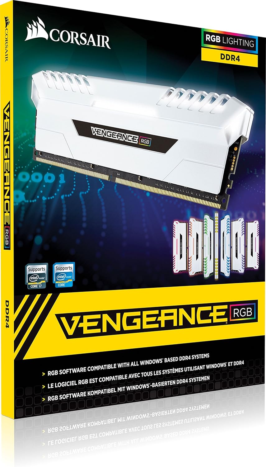 Corsair Vengeance RGB Series DDR4 memory modules are designed to provide an amazing look with effectively placed RGB LEDs and precision-engineered light bar that provides an unmatched light effect and exceptional appearance, matching the design themes of mid-range and high-end motherboards and other gaming PC components. Software control without additional wires allows for a full range of lighting control via Corsair link and a clean wire-free integration. Each module is built using custom performance PCB and specially screened ICs for superior overclocking and reliability on the latest Intel 100 and 200 Series motherboards. XMP2.0 profiles allow for automatic, reliable overclocking at your fingertips.