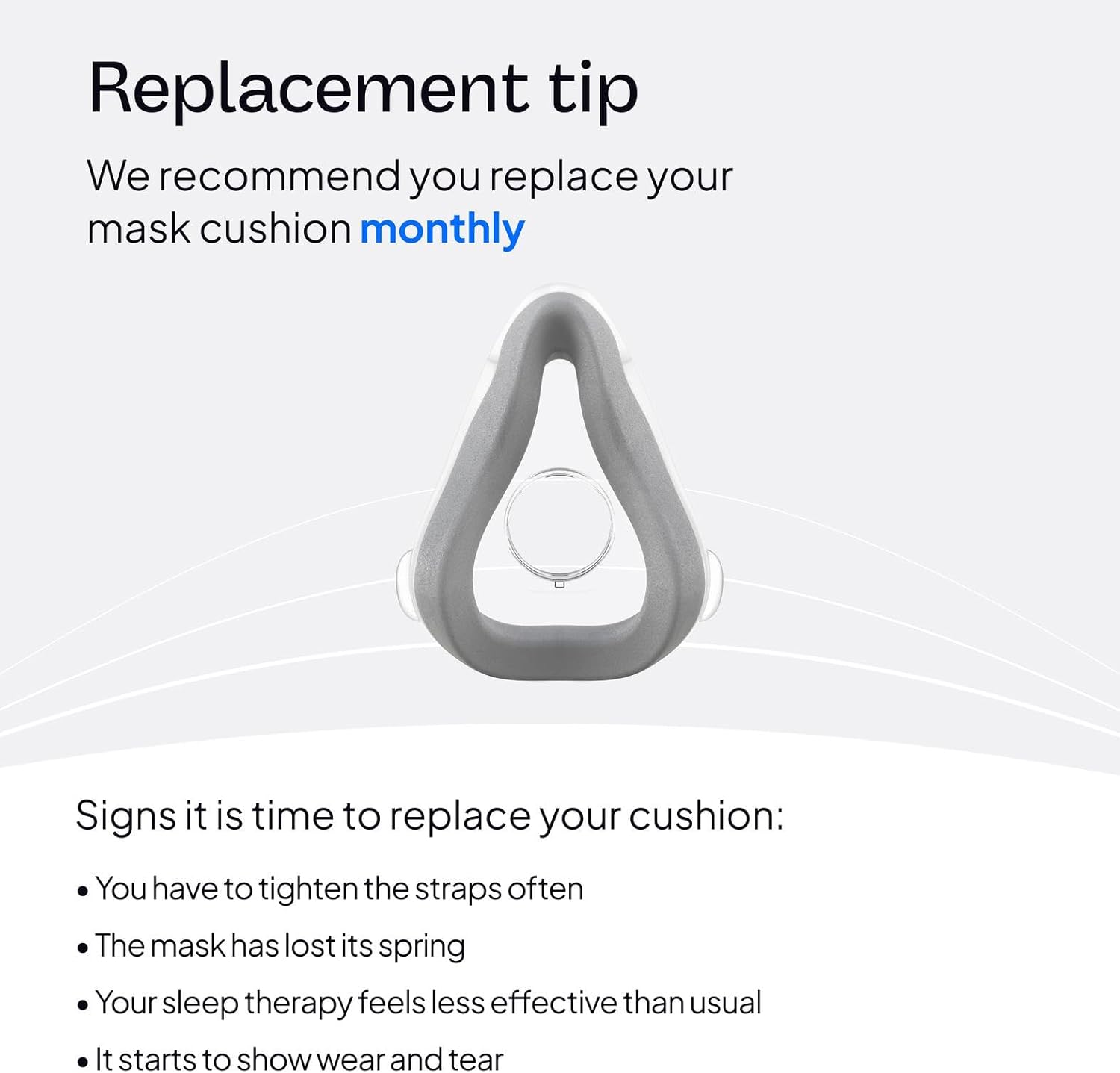 Durable CPAP Cushion: Crafted from robust silicone, ResMed's CPAP cushions are engineered for long-lasting durability, though they should be replaced monthly for optimal performance