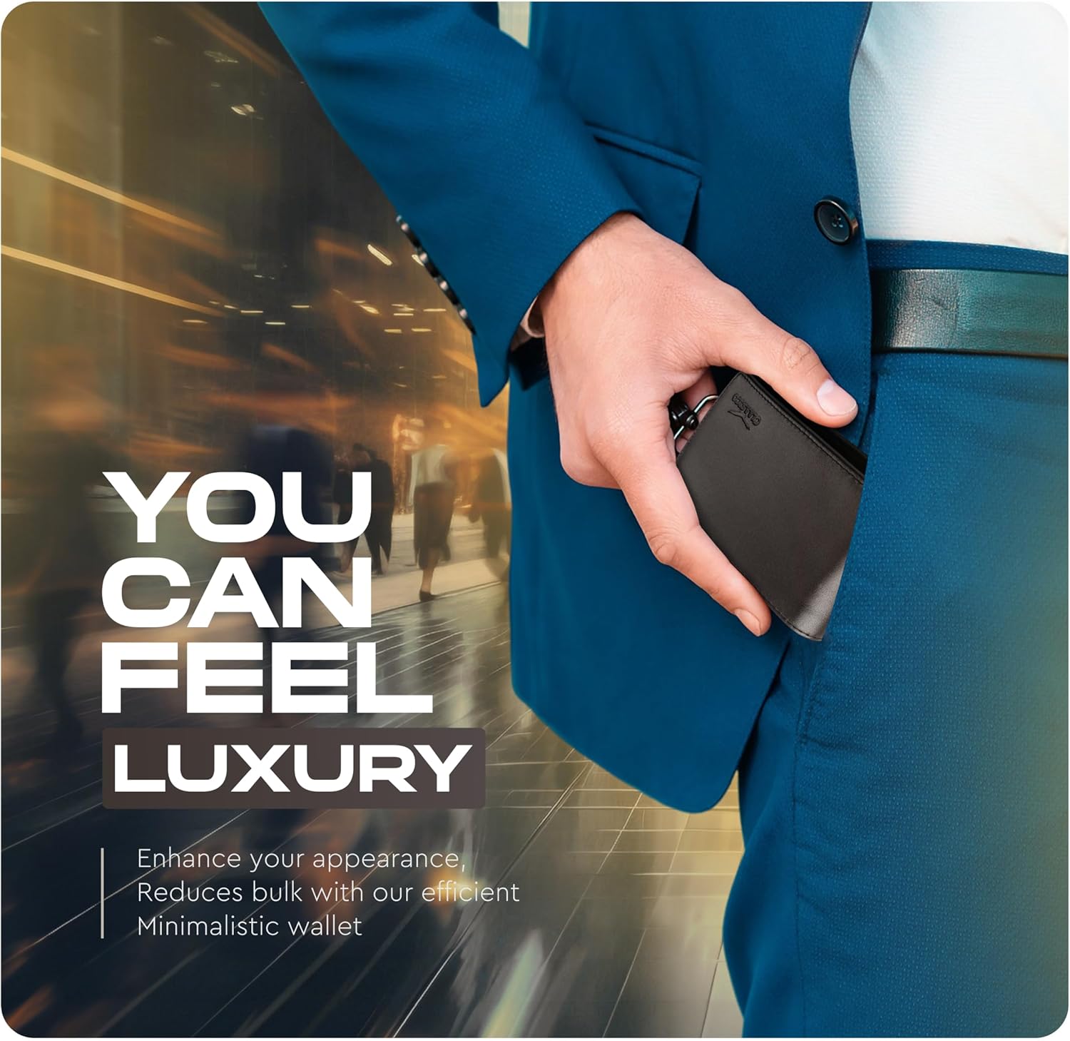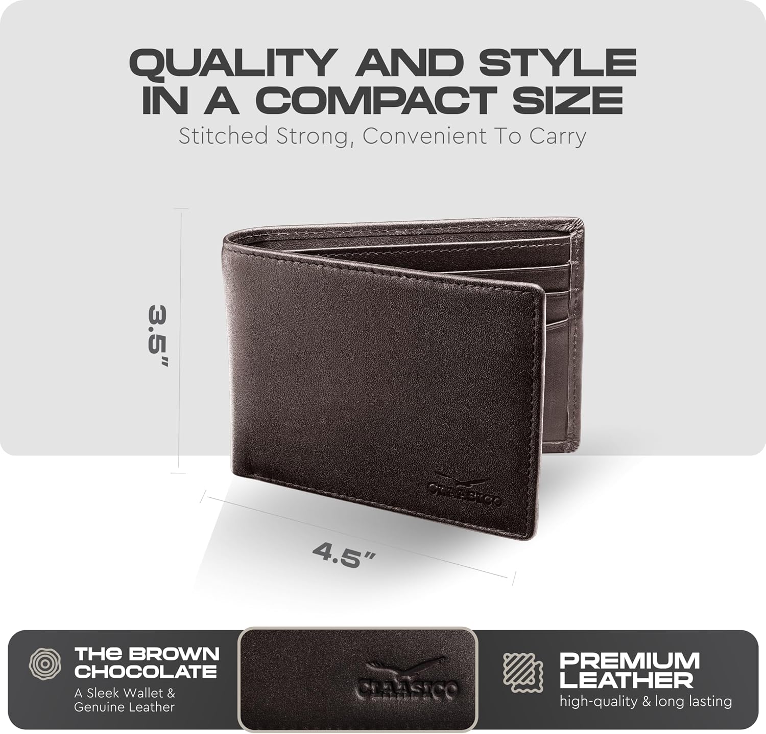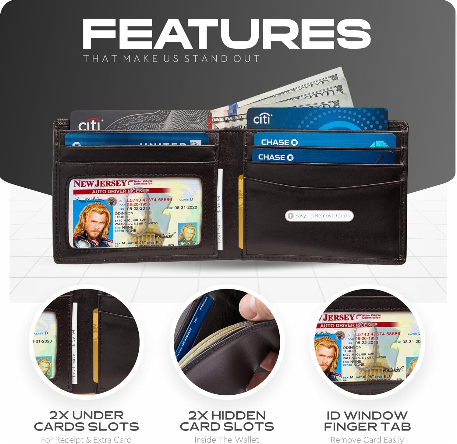 Cartera Bifold para Hombre Claasico – Cartera de Cuero Genuino con RFID, Billetera delgada con tarjeta – Caja de regalo incluida