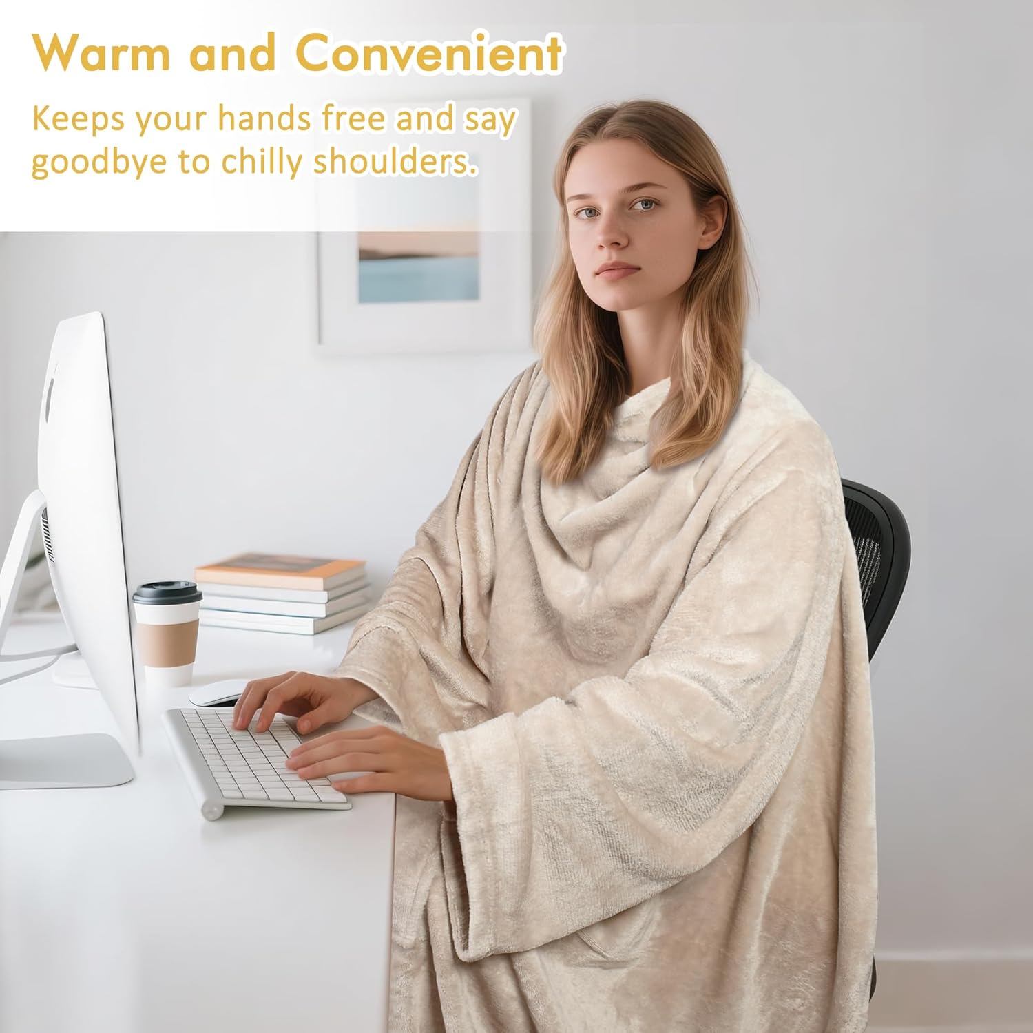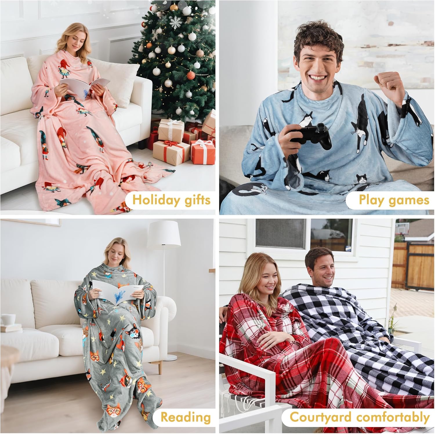 Catalonia Wearable Fleece Blanket with Sleeves and Foot Pockets for Adult Women Men, Micro Plush Comfy Wrap Sleeved Throw Blanket Robe Large, Gift for Her