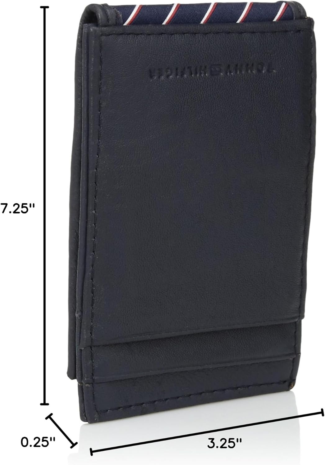 Tommy Hilfiger Men's RFID Leather Front Pocket Wallet With Magnetic Money Clip -navy, 1Siz