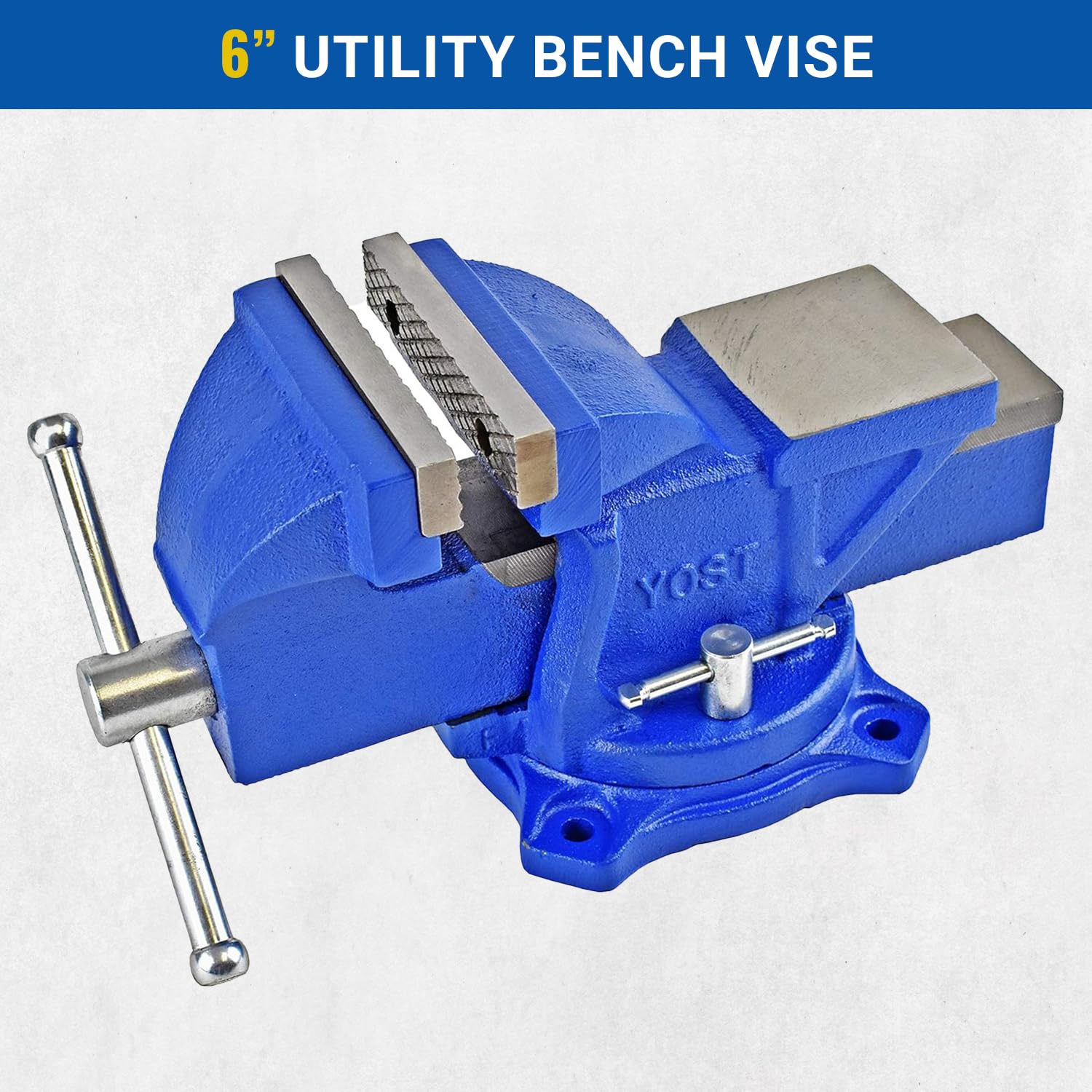 Yost Vises BV-6 Bench Vise | 6 Inch Jaw Width Heavy-Duty Utility Bench Vise | Secure Grip with 120° Degree Swivel Base | Made with Cast Iron | General Multi Purpose DIY Vise | Powder Coated Blue