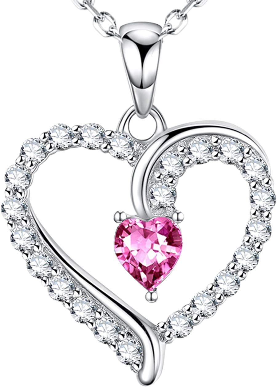 Dorella Birthday Gifts for Wife Love Heart Pendnat Necklace for Women Birthstones Jewelry for Her Sterling Silver Fine Jewelry